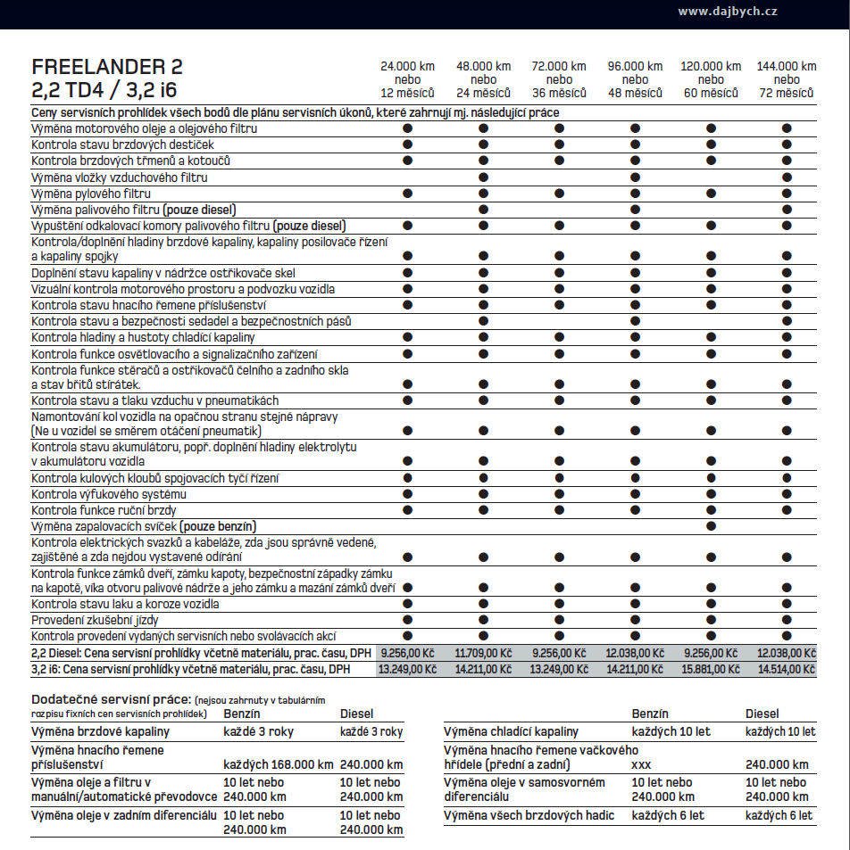 - Free 2 servisní intervaly