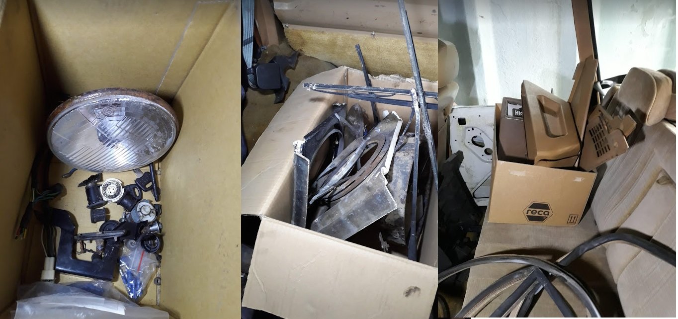 Na autě je udělaná kompletně elektrika (odborně od elektrikáře včetně popisů co kde je), mám dokoupeno mnoho dílů (zpětná zrcátka, těsnění čelní skla, těsnění tailgate, čidlo tlaku oleje, siletbloky atd.). S místem je to aktuálně stále stejný, zatím v suché zděné garáži, otázkou je co do budoucna (garáže se mají rušit). Situace bohužel teď nepřeje, chtěl jsem udělat lak, jenže se nám prodražily práce na bytě a stále je důležitější mít kde bydlet, než lak na autě. Měl by někdo zájem?