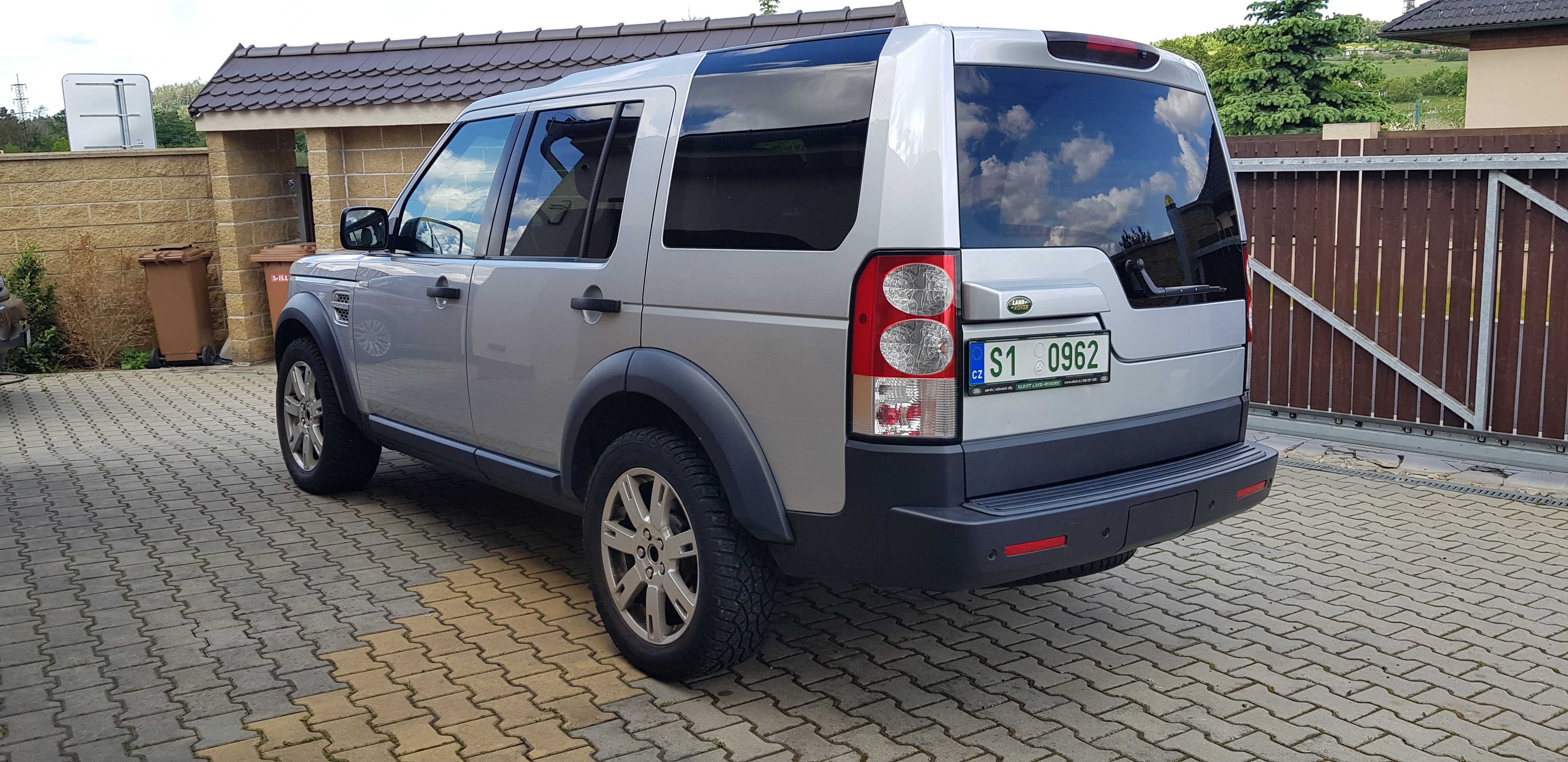 mám tu pěknou D4 ještě s 2.7 TDV6 140kW s DPF, výbava sice S, ale taková pěkná (kožená sedadla, el. sklopná zrcátka, start tlačítkem (to bylo možná standard?), 7 míst, originál tažné (zatím tedy bez koule, tu zkusím sehnat), tempomat, automat 6st. ZF, samozřejmě na vzduchu s terrain response, dodělávané plně funkční HF Parrot, 19" kola s AT pneu, plnohodnotná rezerva, vyhřívaná sedadla vepředu i vzadu, automatická dvojzónová klimatizace, atd. Středový krytky na kola dodám.