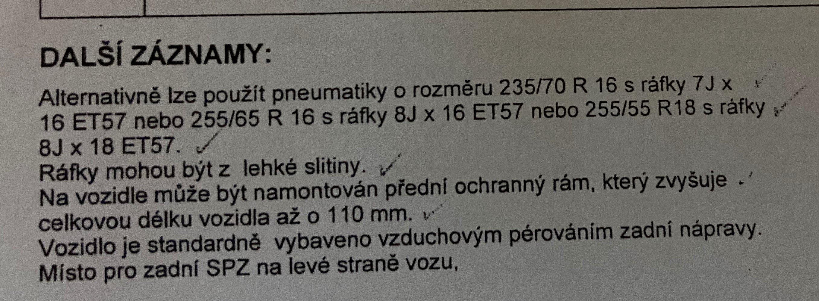 Re: Zápis pneu 255/75/ r16 pro Disco 2