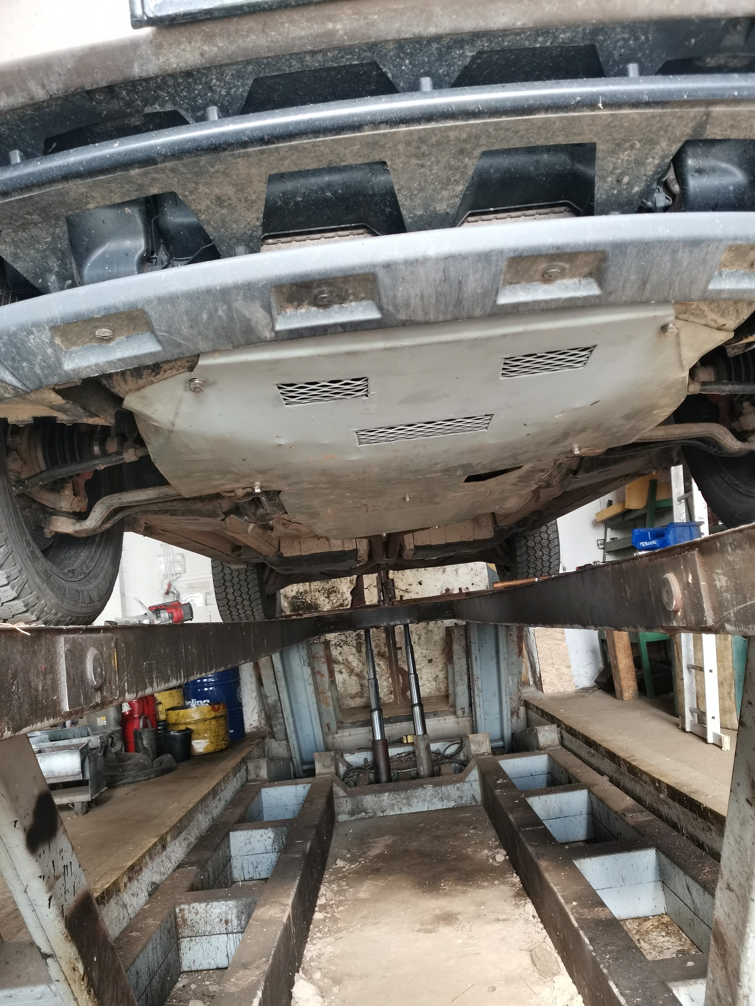 Jenomže, origo plast končí před převodovkou, a já to mám zakrytovaný až za mezinápravák. Účel toho plechu neni chránit auto proti větvím a blátu, ale proti kamenům. Ja s tím moc blátem nejezdím, jenom pokud je to nutný a není východisko.