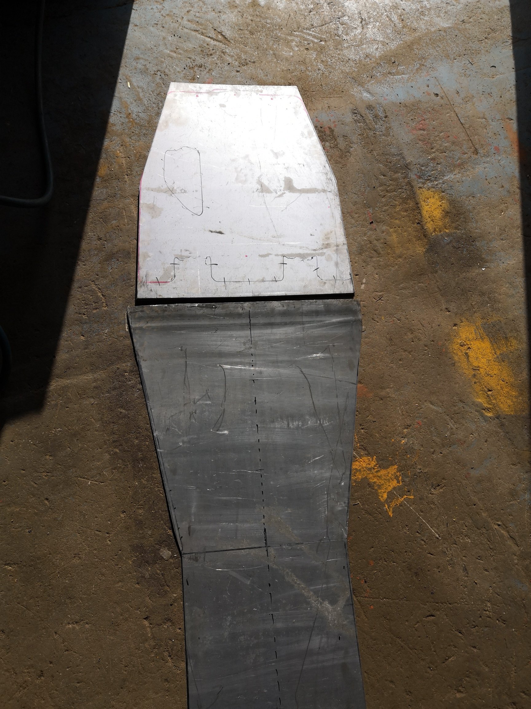 No a pouštím se do práce. Kamarád mi v CADu spočítal sílu plechu, musí stačit na inkriminované místa 2 plechy o síle 2 mm, které se zbodují do sebe, tím vzniká sendvičový efekt a plechy vydrží obrovské namáhání. Tam kde plech kryje na krátkou vzdálenost mezi výztuhami použiju plech 2,5 mm samostatně. Použiju tvrdý pozinkovaný plech, který se používá při výrobě karoserii automobilů.