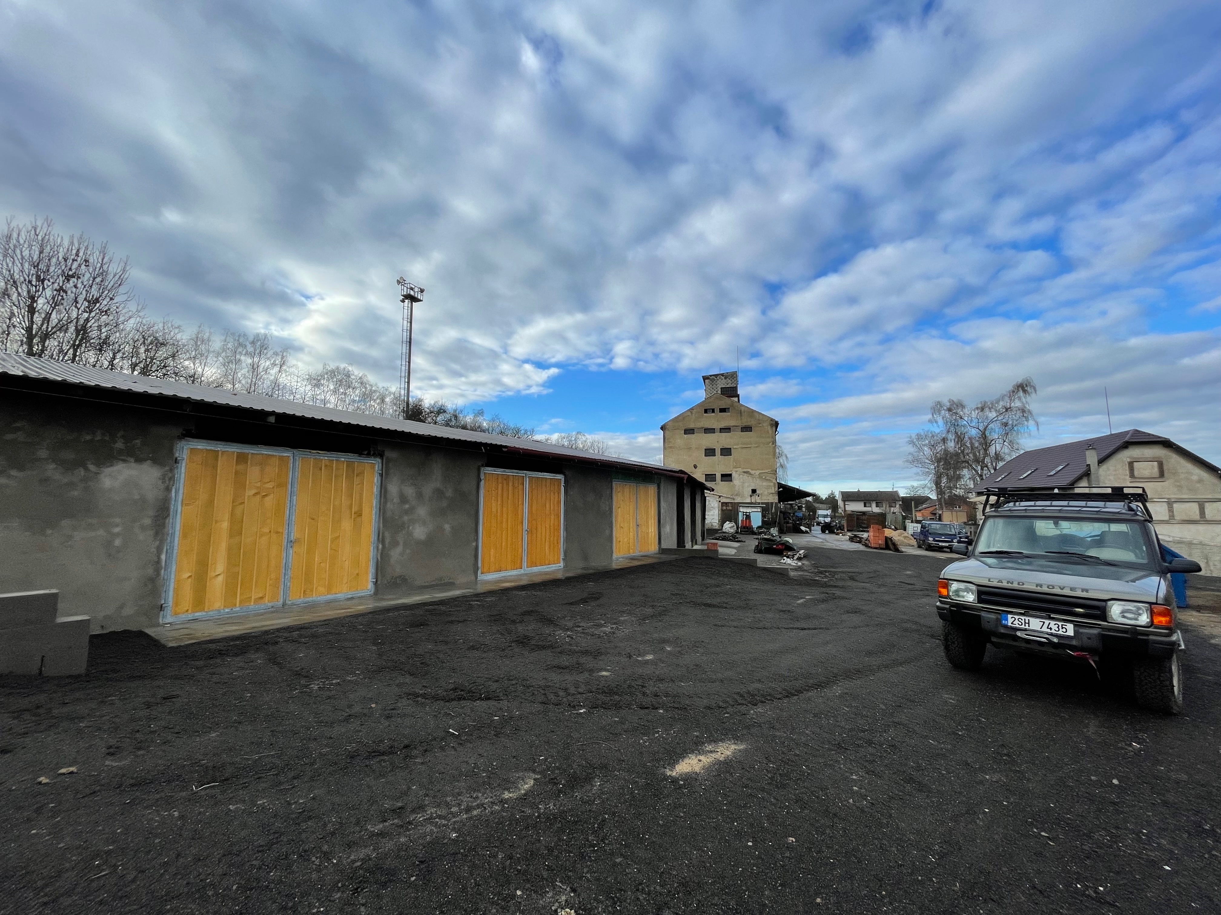 Stejných skladů je zde celkem šest vedle sebe, ale několik je již aktuálně pronajatých. Cena za pronájem jednoho je 2000 Kč/měs. Minimální doba nájmu je 6 měsíců.