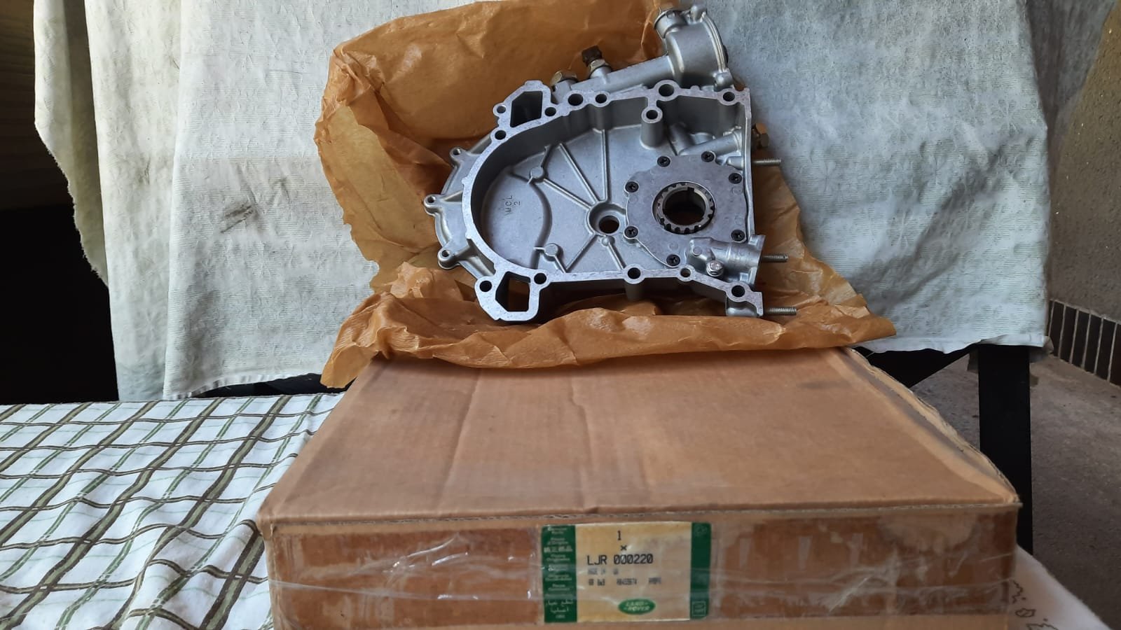Přední prsa motoru Disco 2, V8, včetně olejového čerpadla, LJR000220, originál, cena 4 800 kč.