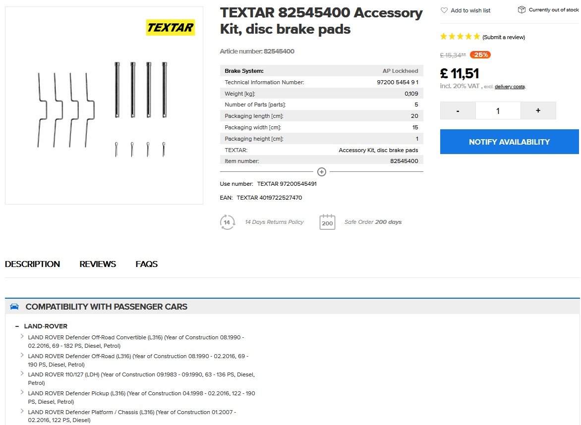 Teď už zbývalo dořešit jen to rachtavé klapání destiček. To mi přišlo intenzivnější od přední nápravy. A tam existuje řešení v podobě jiné zajišťovací sady - zde konkrétně Textar 82545400.