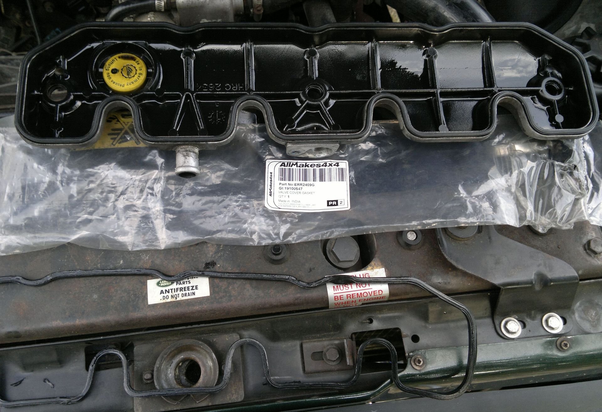 Přestože se těsnění víka (díl ERR2409) může klidně použít opakovaně (doporučuje se max. 5x), tak jsem měl připravené nové. Což bylo dobře, protože v jednom místě bylo to staré skříplé a zdeformované. To nové jsem osadil zatím bez přídavného tmelení, tak uvidím jestli budou průsaky.