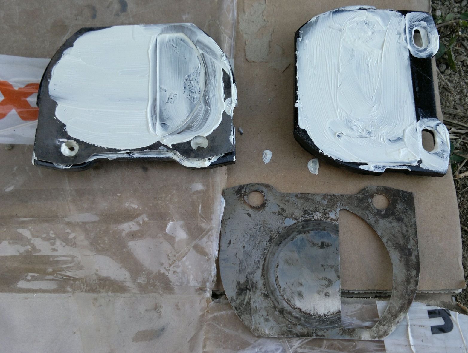 Tentokrát přišly ke slovu meziplechy umístěné mezi destičkami a pístky. "Chleby" je třeba pořádně namazat. Tentokrát jsem použil keramickou pastu (na místo titanové), protože mi přijde, že po odpaření nosného oleje přeci jen více ztuhne a odolává vytírání a vymývání.