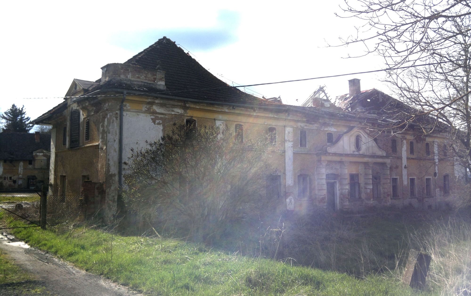 Je to hezký místo, se až divim, že se toho nikdo nechyt. Dneska už by to ale zachránil jedině nějaký kulturní projekt dotovaný z EU. Já myslím, že už to není ani na ten urbex. Střechy už neunesly tíhu (fuj tadle fotka je mizerná :grin: ).