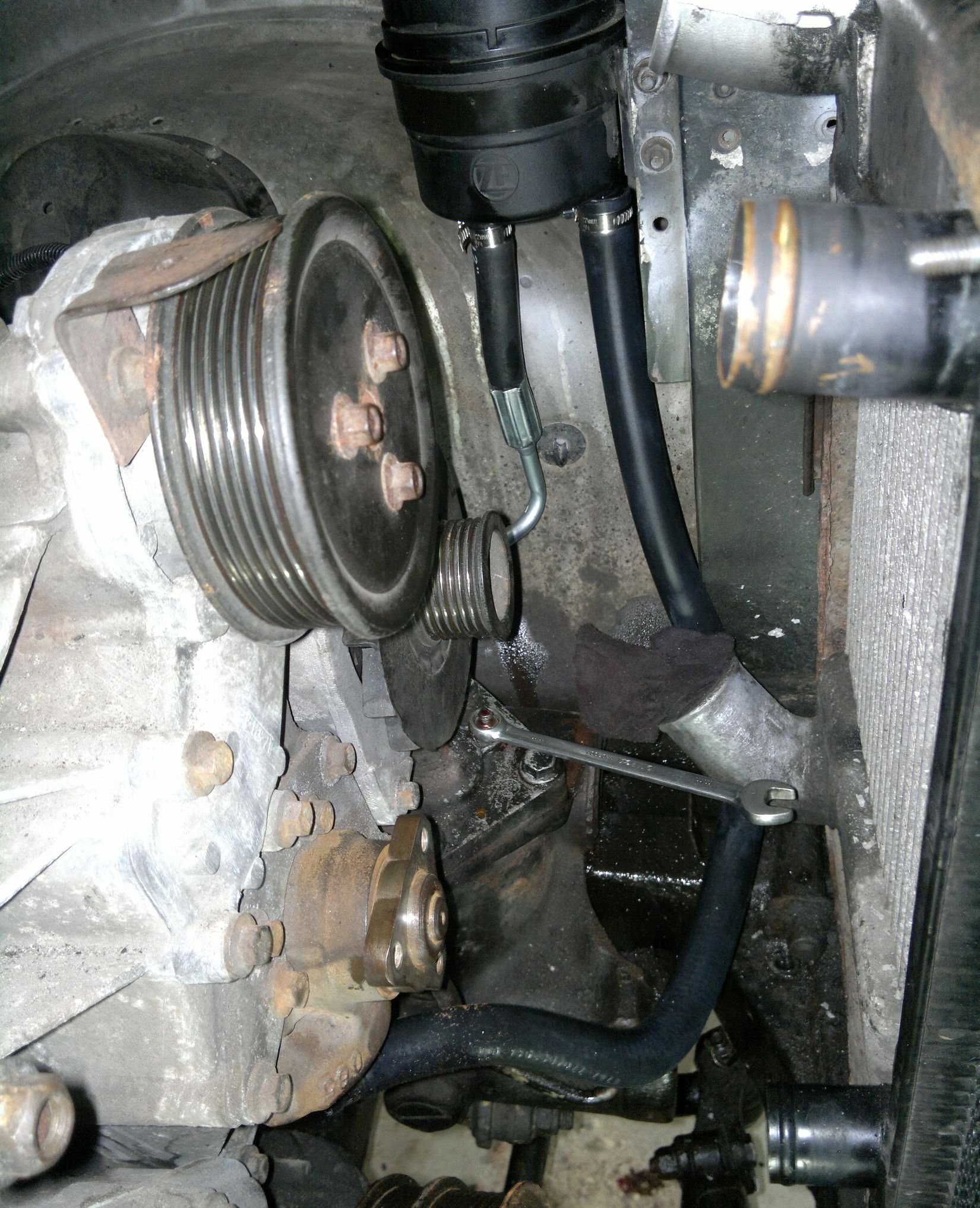 Nakonec pro lepší přístup musel dolů i řemen a řemenice od servopumpy.
