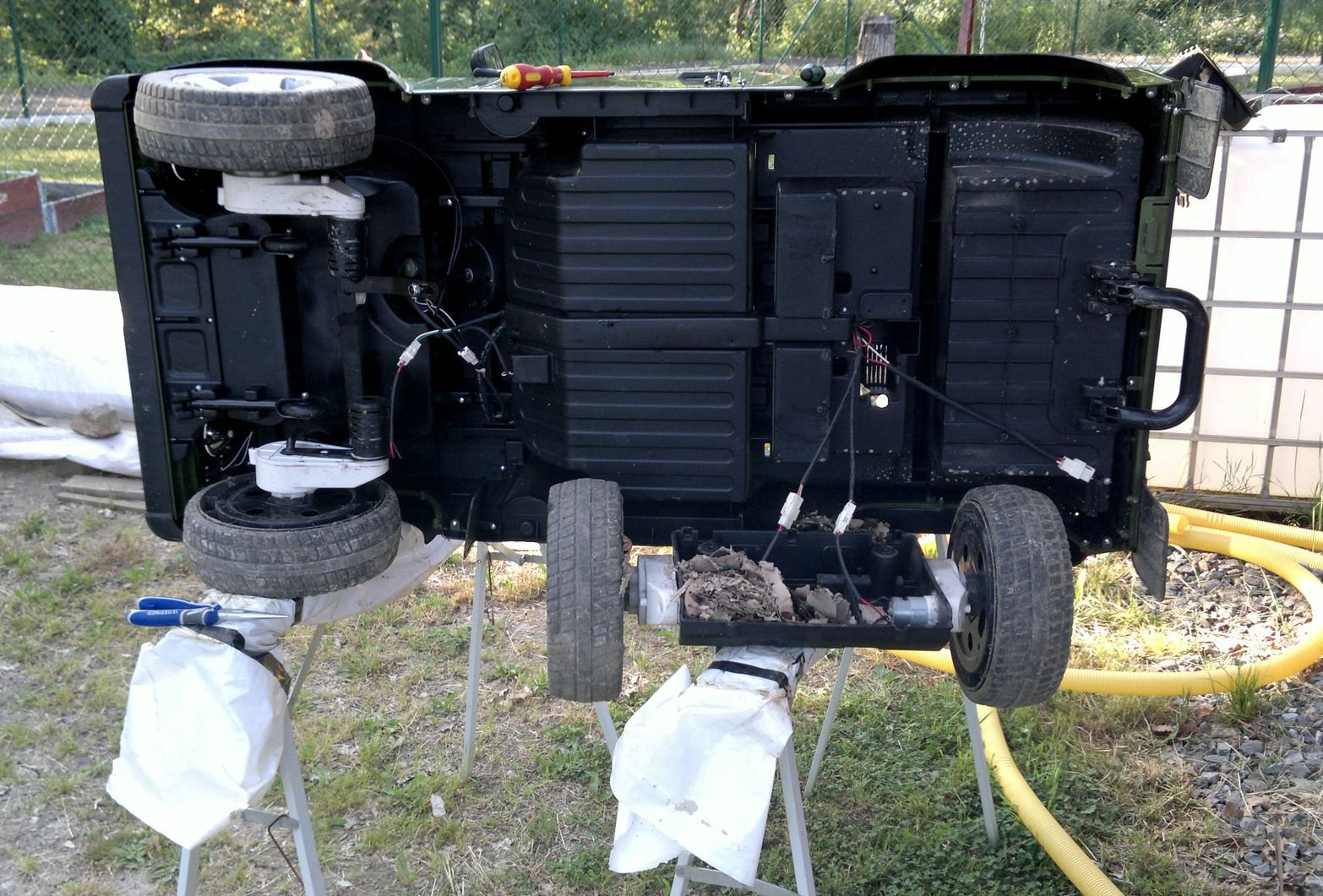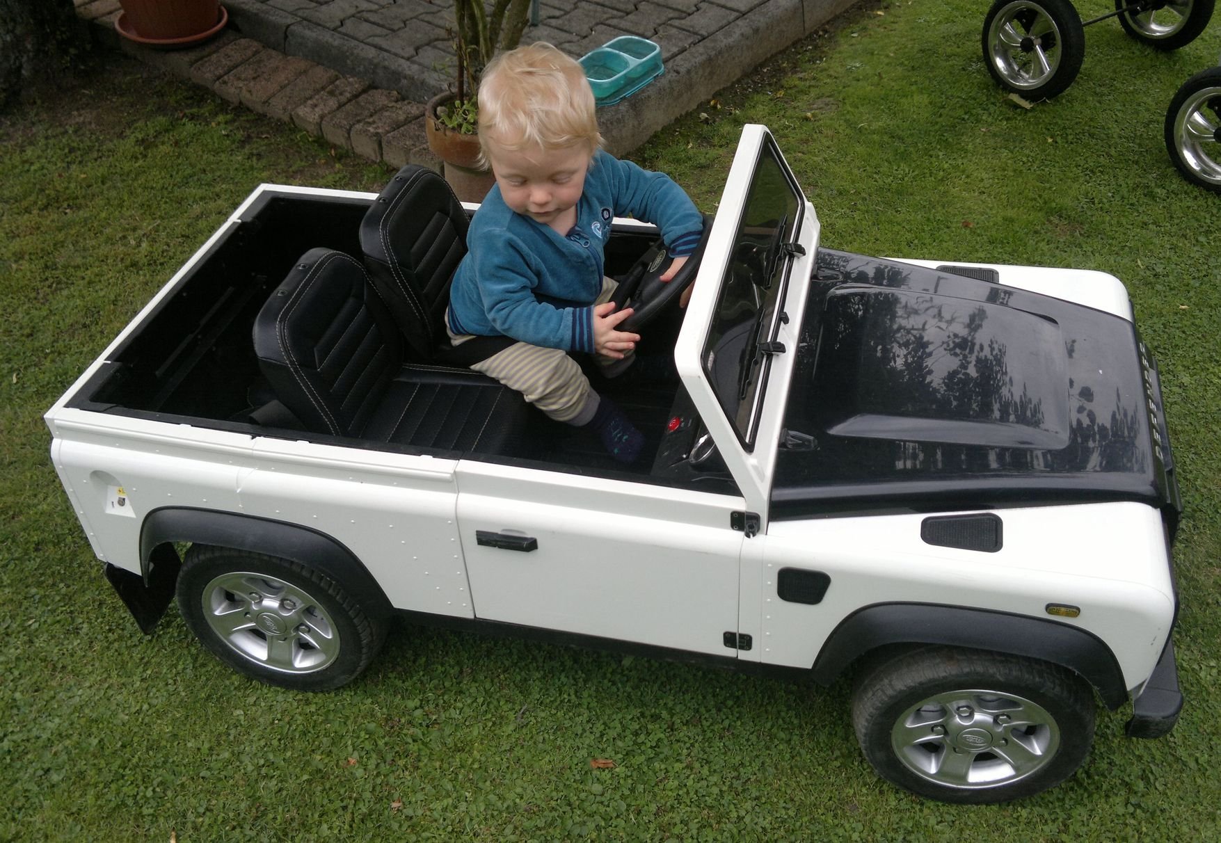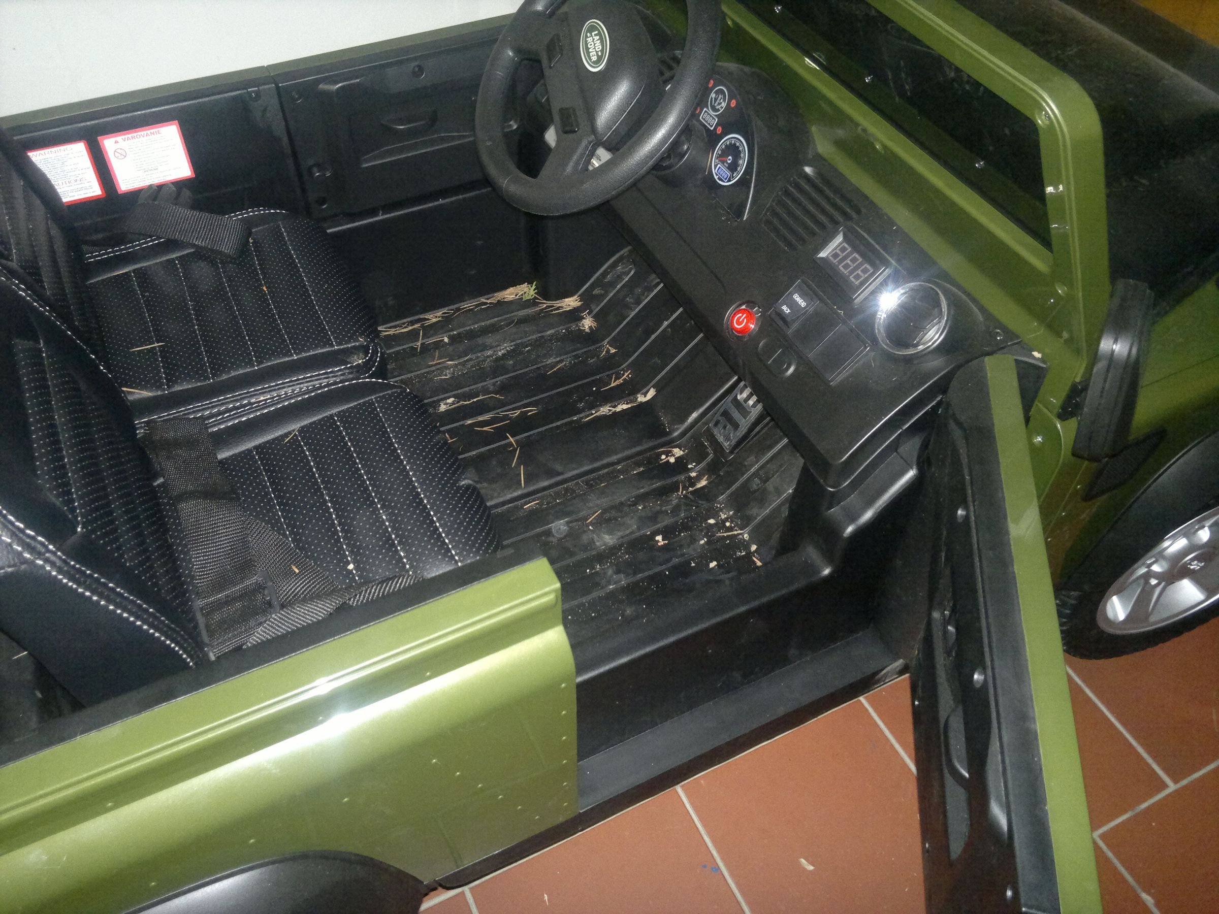 Protože náš mrňous povyrostl a překročil 3 rok, tak jsem na konci roku sezdal, že je nejvyšší čas, aby mu Ježíšek přinesl malého Land Rovera. Sice jsem pošilhával po Toylandru, ale protože i cena pouhé stavebnice nebezpečně atakuje cenu ojetého rodinného vozu, tak padla volba na čínský výtvor od fy Beneo, který se objevil ke konci roku hned na několika eshopech. Pokud si na něj někdo rovněž brousí zuby, tak zde je alespoň pár doplňujích údajů a fotek, které v eshopech nejsou. Zatím jsme s ním jezdili jen párkrát, ale rovnou musím říct, že mě autíčko svými jízdními vlastnostmi mile překvapilo, ne-li šokovalo. Je to poctivá čtyřkolka, která si poradila i 30ti stupňovým stoupákem s mokrou trávou a bahnem. Přejíždění nerovností na zahradě včetně cihel a hranolů není problém.