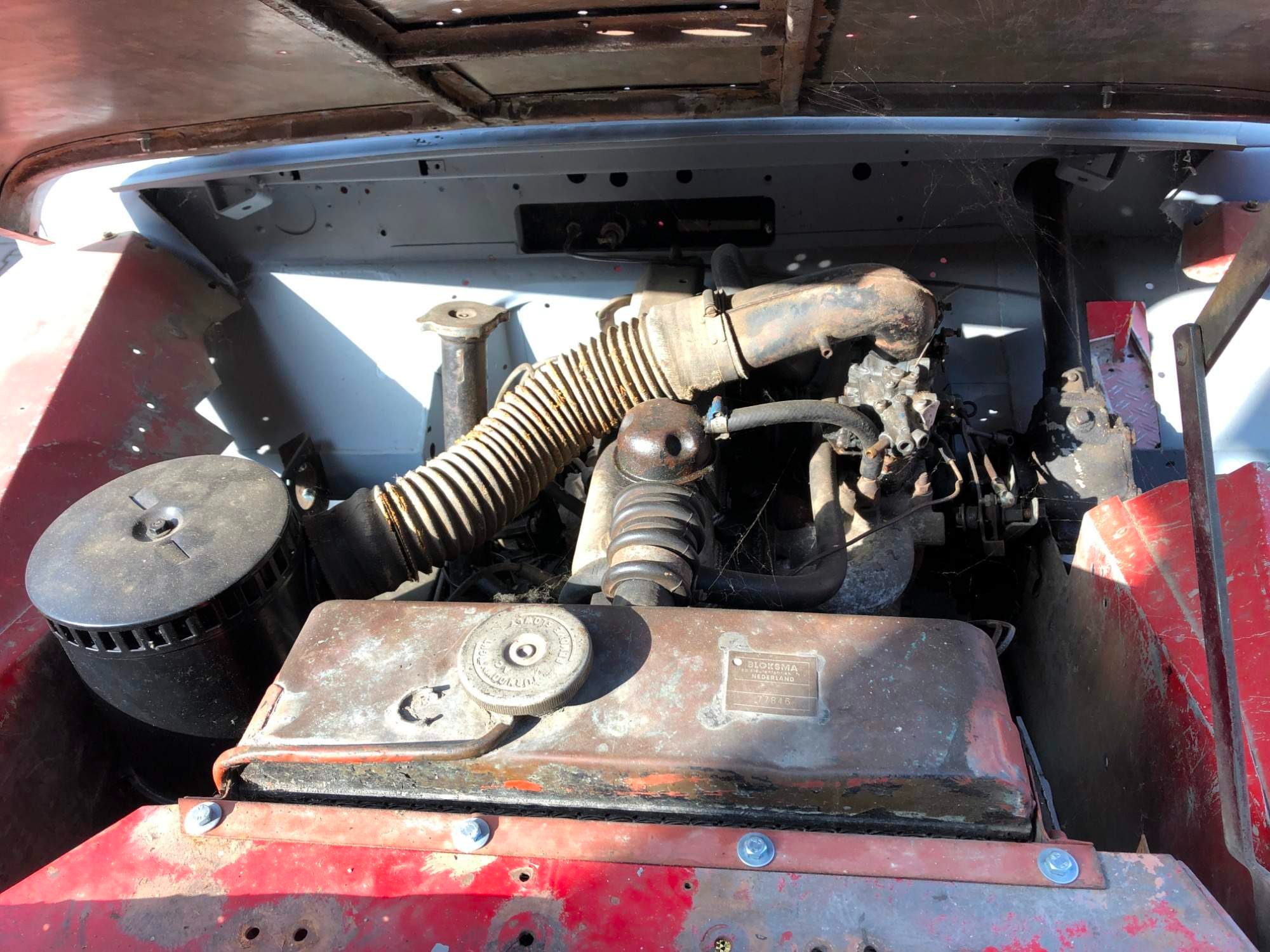 Aktuálně je 107ka v přístřešku pod plachtou. Ostatní díly jsou uschovány v suchu. Mám k autu i mechanický naviják! Auto přiljelo z Holandska s S3 benzínovým motorem a ten je aktuálně opět v autě. Jedničkový originál 1,6 k je k autu, ale nebude kompletní. V případě zájmu přidám i diesel 2,3 ze Serie 3.