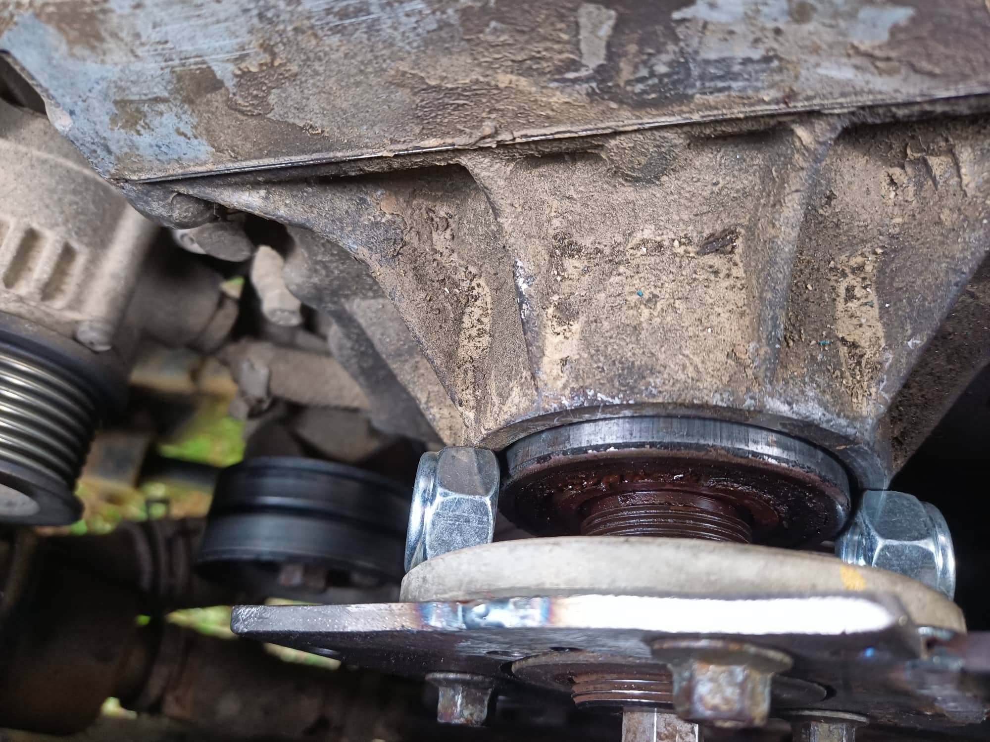Po sundaní řemenice ( 3 šruby na 10mm klič) prostě obkreslit a vyvrtat. Děr navíc si nevšímejte vše dělám z odpadu.