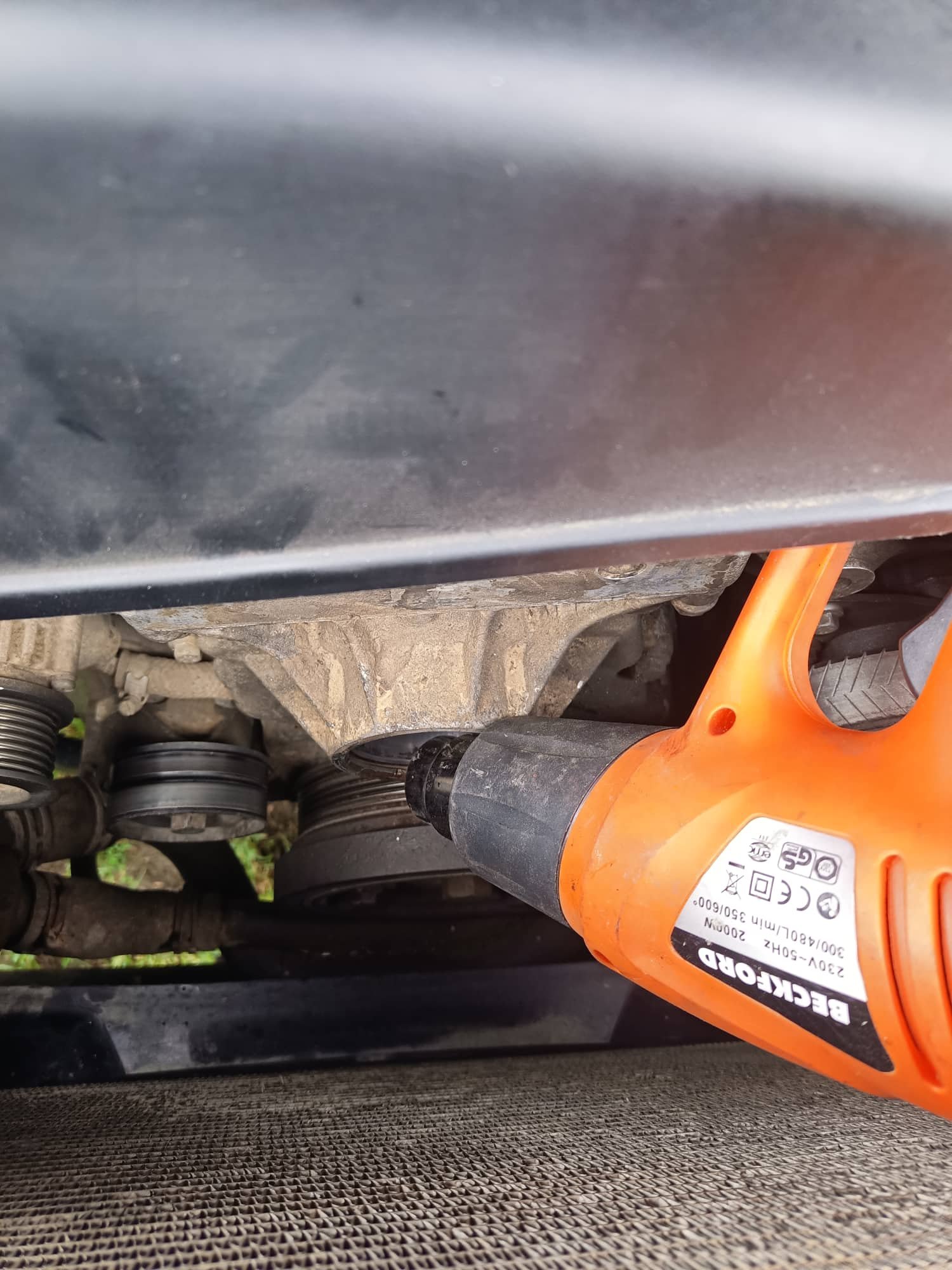 Umístění zpět na bok motoru po použití mrazáku na ložisko a horkovzdušky na blok bylo otázkou vteřiny. Jediná komplikace na celé operace je sundat segrovku co drží ložisko. Chce to velké zahnuté kleště. Ty já neměl, dělal jsem to za urputného nadávání nějakýma starýma ludrama které, jsem kladivem a bruskou upravil na požadovaný nástroj.