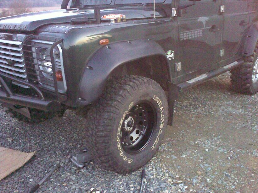 Trochu jsem pokročil v úpravě disků. Na prvním obrázku je původní disk a na dalších již otočený střed a nalakované disky. Pneu jsem zvolil 265/75/16. Není to sice nic noc zozměr