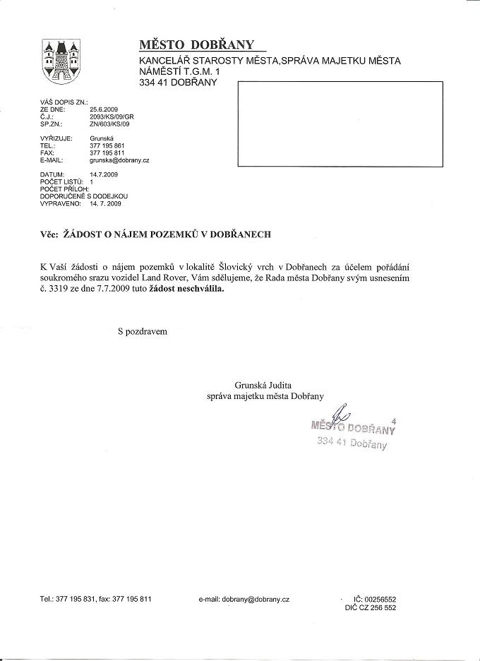 Luboš M. píše:Tak já se musím přiznat, že jsem pro Vás měl připravený také sraz. Akci jsem plánoval již od srazu LRC, na který spoustu kamarádů nepřijelo. Připravil jsem 7m stan, lavice, občerstvení (udírnu, pivo)světlo, toaleta atd. Akce měla probíhat na trati u Dobřan, ale po zamítnutí pronájmu ze strany obce jsem to raději vůbec nepsal. Proč se zde mohou pořádat maratony??? Proč Daibych může pořádat předváděcí akce??? A proč nepovolí sraz 30 aut??? O penězích nebyla zatím řeč a paní sekretářka byla velice příjemná a celou akci mi posvětila s tím že stačí pouze pís.žádost na obec. Jak to dopadlo si přečtěte dole:-(((((