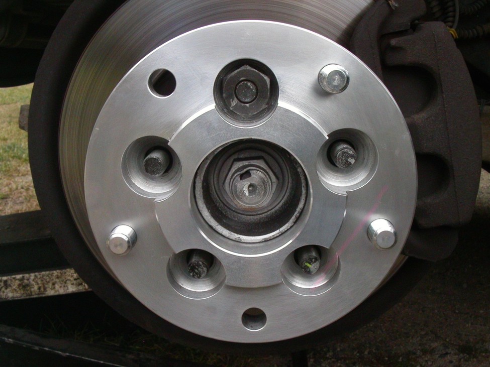 4) Adapter pro změnu rozteče LR Discovery 2 a RR P38 z rozteče 5x120 mm na rozteč 5x165 mm, umožňující použití disků z vozidel LR Defender, LR Discovery 1, RR Classic.
