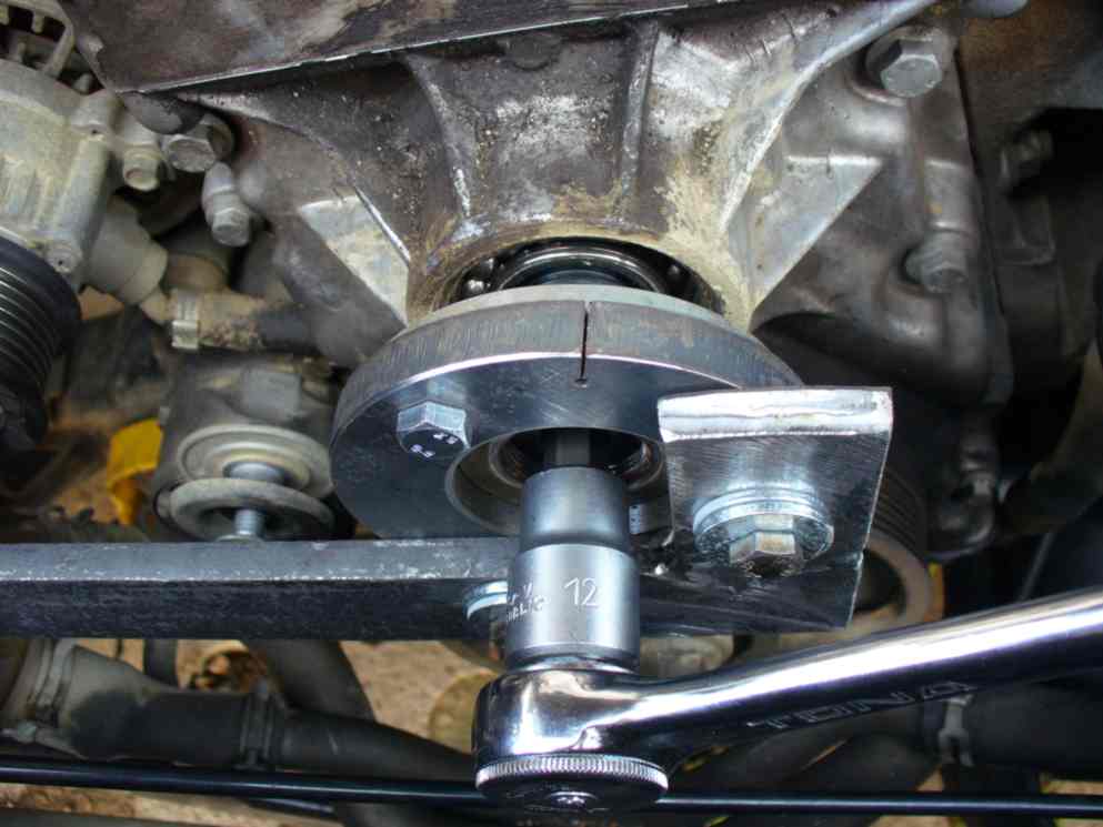 Tak na vytažení toho ložiska jsem si udělal přípravek, ale musím ho ještě trochu vychytat. Dalo by se říc, že fy LR ta ložiska pěkně fláká. Už jsem měnil skoro všechny ložiska tedy kladku, samonapínací kladku (ta jediná měla gumové krytí ložiska) a teď ložisko vrtule. Miloš II