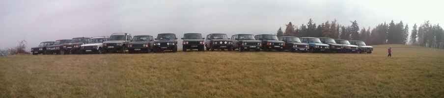Aktuálně: 1979 SIII 88" 2,25 l Petrol a 1983 two-door Range Rover V8; Dříve navíc: 1969 SIIa 88" 2,5 l Petrol, 2003 Discovery 2 TD5, 2005 Discovery 3 TDV6 S, 2011 Discovery 4 SDV6 SE, 2016 Discovery 4 SDV6 HSE a 2021 Defender 110 SE D250