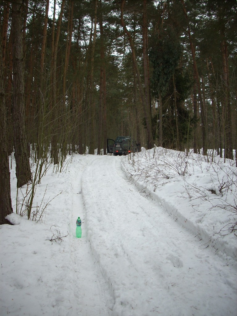 Auto asi zostavalo lezat na bruchu, lebo po kazdom odhádzaní lopatou sme sa pohli tak o 5m. Další problém je že to nie je rovná cesta je potrebné dost prodko odbočiť dolava a potom asi 20m do kopca a je to medzi stromami, čiže nejaké brutálne rozbehnutie tam nie je možné. Po tej ceste sa jazdí v lete tak 10-15 km/h.