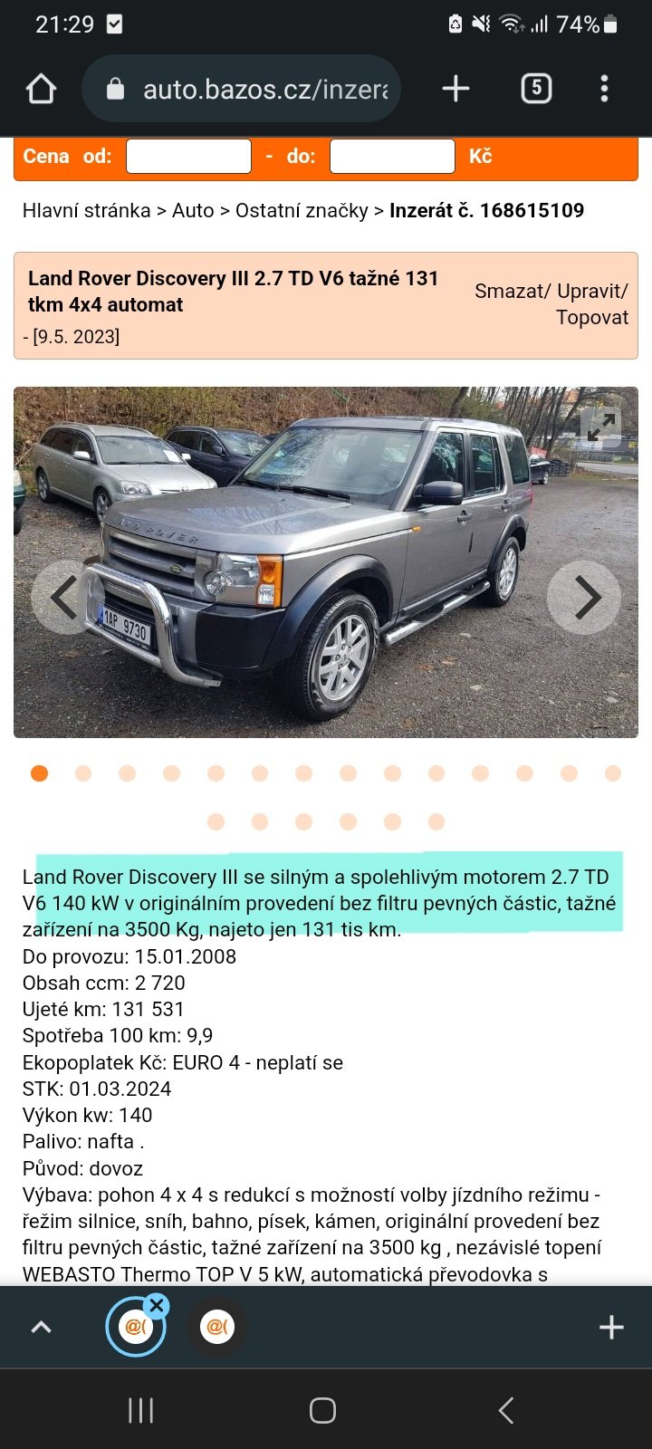Zde je VIN pro vycet vybavy , zadni diff uzaverka tam opravdu neni taky jsem se o ní zajímal... [emoji3] SALLAAAG4AA531152Miky_CZ píše:Já jsem se byl dneska na tu bývalou Benjovu D4 podívat.