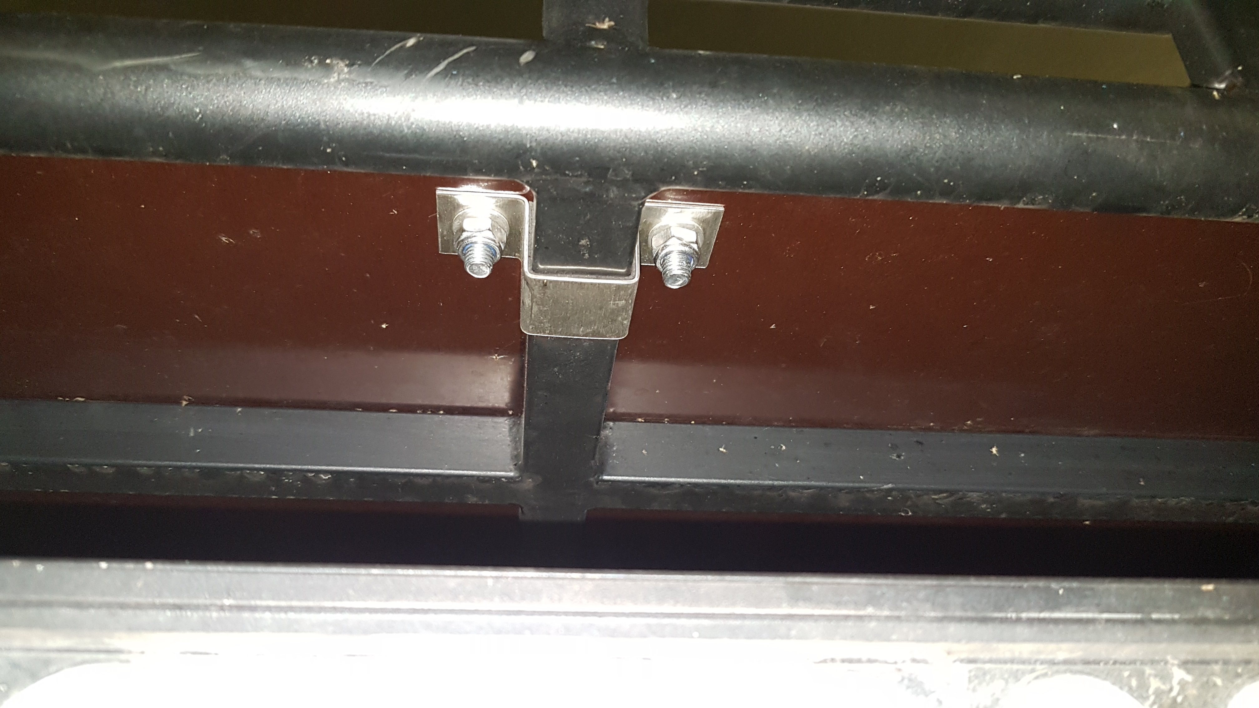 jo, něco se určitě najde. pochopil jsem, že tam ondra má hranatý profil – jak píše "mám to z jeklu 20 x 20". takže tento kruhový asi nebude úplně to pravé :shake ale nějaké to hranaté poutko by možná sednout mohlo. ono to nemusí držet úplně fest. stačí, aby to za jízdy neuletělo a člověk to neurval, když na tom bude vylezený. protože těžké věci budeš stejně kotvit těma dírama přímo k zahrádce. podstatná bude výška toho poutka. aby to bylo tak akorát. když bude širší, nevadí. dá se to i tak upevnit festovně: