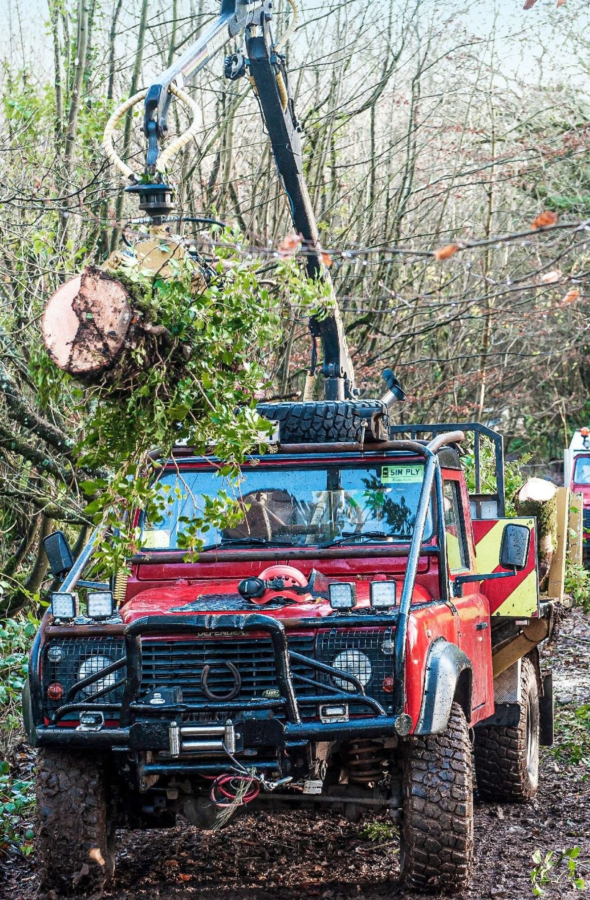 On to má dřevorubec vymyšlený - tímhle Defem jen vyndá klády z bordelu a převeze na vhodnější místo, tam je rozřeže a rukou nandá na druhého Defa, který má sklápěčku. Jinak prý je to v podstatě sériovka - standard nápravy, převodovka i 300vka motor (jen lehce tuněná, zřejmě přes čerpadlo). Akorát rám vzadu musel vyztužit 3mm přeplátováním, aby se nerozlomil.