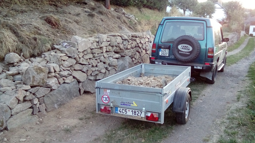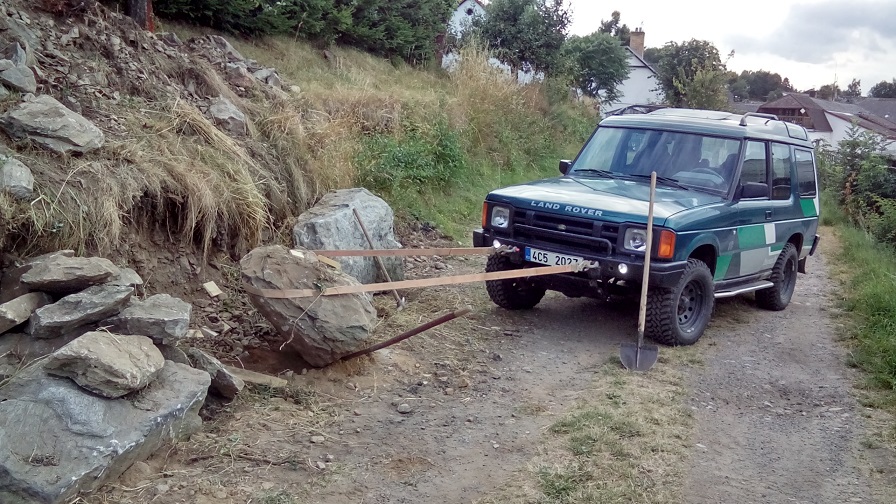 Nejen zábava ale taky nějaká práce a tak jsem zahájil opravu zdi z divočiny, no a proč se dřít když mám landrouvra.