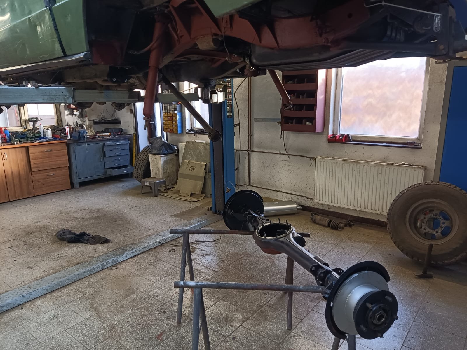 Minulý rok se provedlo sundání a rozebrání karoserie, precizní očista a nástřik spodku, nové odpružení a silentbloky na podvozku.