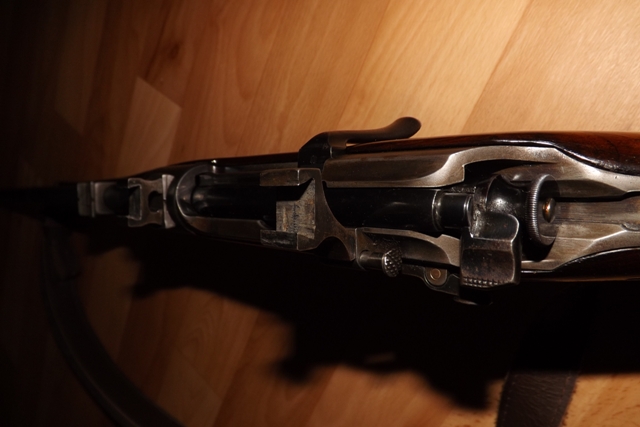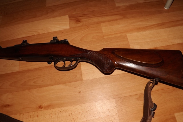 Pažba je udělaná, hlaveň i lůžko závěru jek z fabriky, ale naskytl se problém s puškohledem, resp. montáží. Je tam původní klasická Mauser klapková montáž určená pro puškohled Zeiss Jena 4X. Nebyl by sice problém udělat novou montáž, koupit moderní puškohled a tradá, ale bylo by to, jako dát na dědka 20" elektrony a nízkoprofilový gumy
