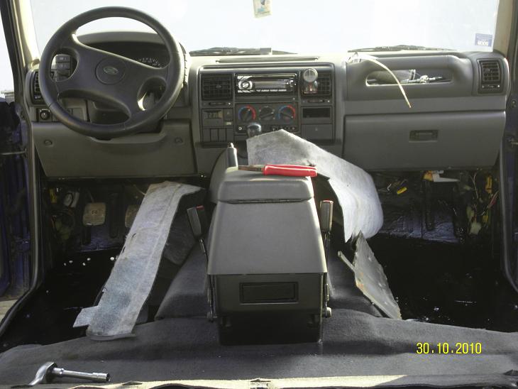 Včera jsme začali rozebírat a odpojovat. Dnes jsme vyheverovali kastli cca. 20 - 30 cm od rámu a vypodložili. Bez zvedáku je to docela potička :whew Takhle už zůstane, je dost těžká a není zařízení ani prostor ji dát úplně na stranu, i když ji s rámem už krom nějakých hadic klimy a pár drobností asi nic nedrží. Zítra snad příjde dolů z rámu ještě nádrž a brzdové i naftové hadičky apod. Kastli jsme nejdřív měli vypodloženou jenom na rámu, ale to se neukázalo jako úplně nejbezpečnější řešení (kastle nám sjela ze špalíků o 40 cm na bok), tak jsme ji odpoledne radši vypodložili za prahy od země. Bude sice k rámu o něco horší přístup, ale alespoň nám to nespadne na hlavu a dá se hýbat s rámem pod autem na pozdější dopasování až to půjde dolu.