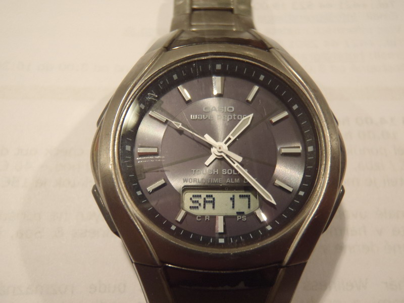 Pred 10timi rokmi v roku 2003 som si cez eBay kupil z Haburgu od obchodnika s hodinkani tieto hodinky. Titanovy naramok, riadene radiom "DCF", solarne nabijanie dez display, vodotesne do 10m. U nas vtedy stali 16tis. SK ja som platil 7 tis. SK. Vsetci mi vtedy ukazovali na celo, si blazon je to atrapa. Ale po 10 rokoch idu stale bez menenia baterie na 0.1s presne a sami sa prehadzuje na letny a zimny cas aj s rucickami. Je to krasny kusok techiky, foto je autenticke. Jedna sa o model Casio WVA-420TEE. Je to moj spolocnik vo dne v noci a nedam na ne dopustit. Plaval som s nimi v mori, kade tade v bordeli a stale presny cas na desatinu.