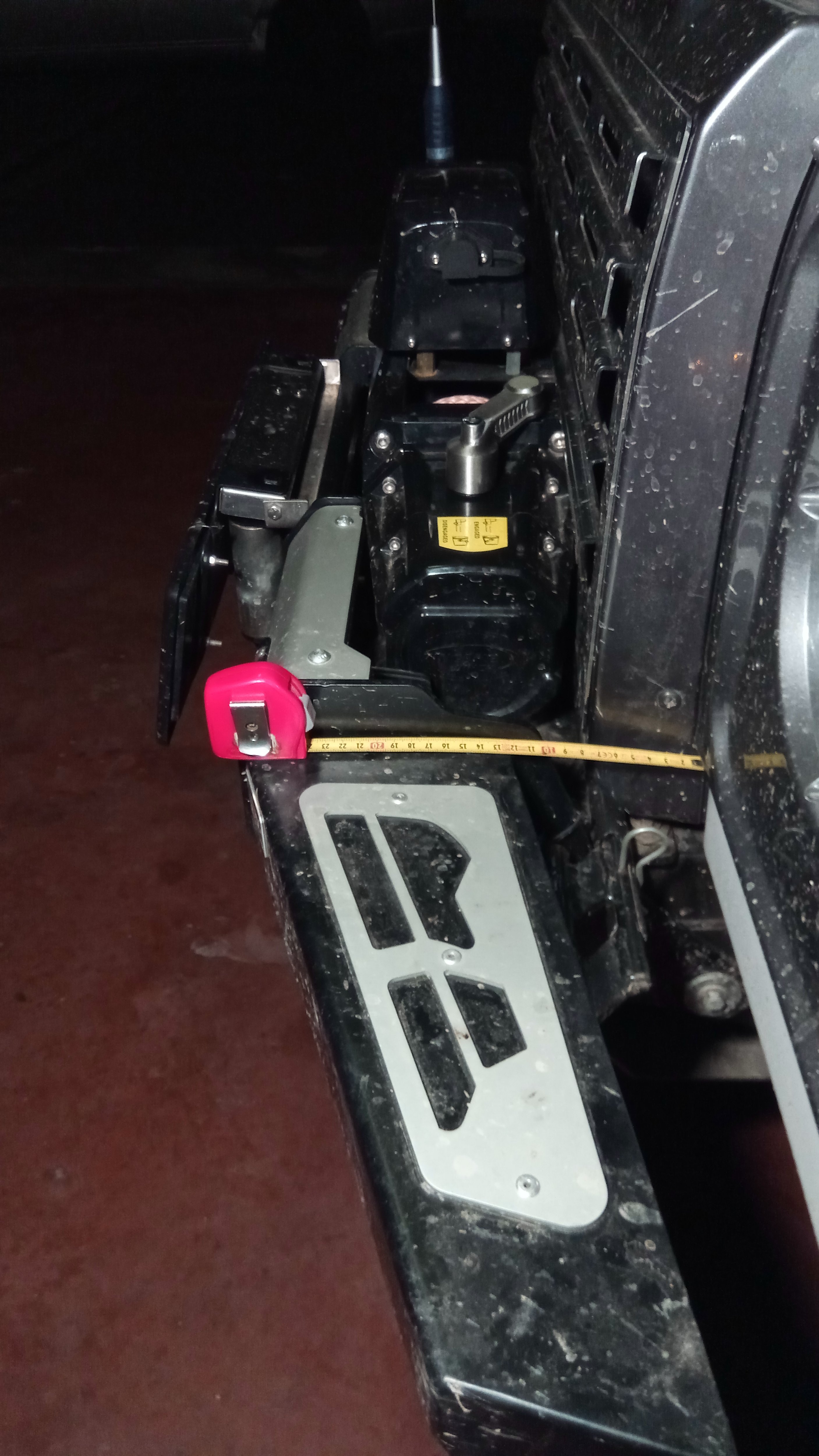 A druhá věc - naviják jsem se snažil zasunout co nejníž a do rámu - mezi podélníky. Dělá to potom menší páku na upevnění k rámu. Na to je ale potřeba, aby šel naviják montovat až do přidělaného nárazníku, protože jinak je tam ke šroubům horší přístup než k penězům.
