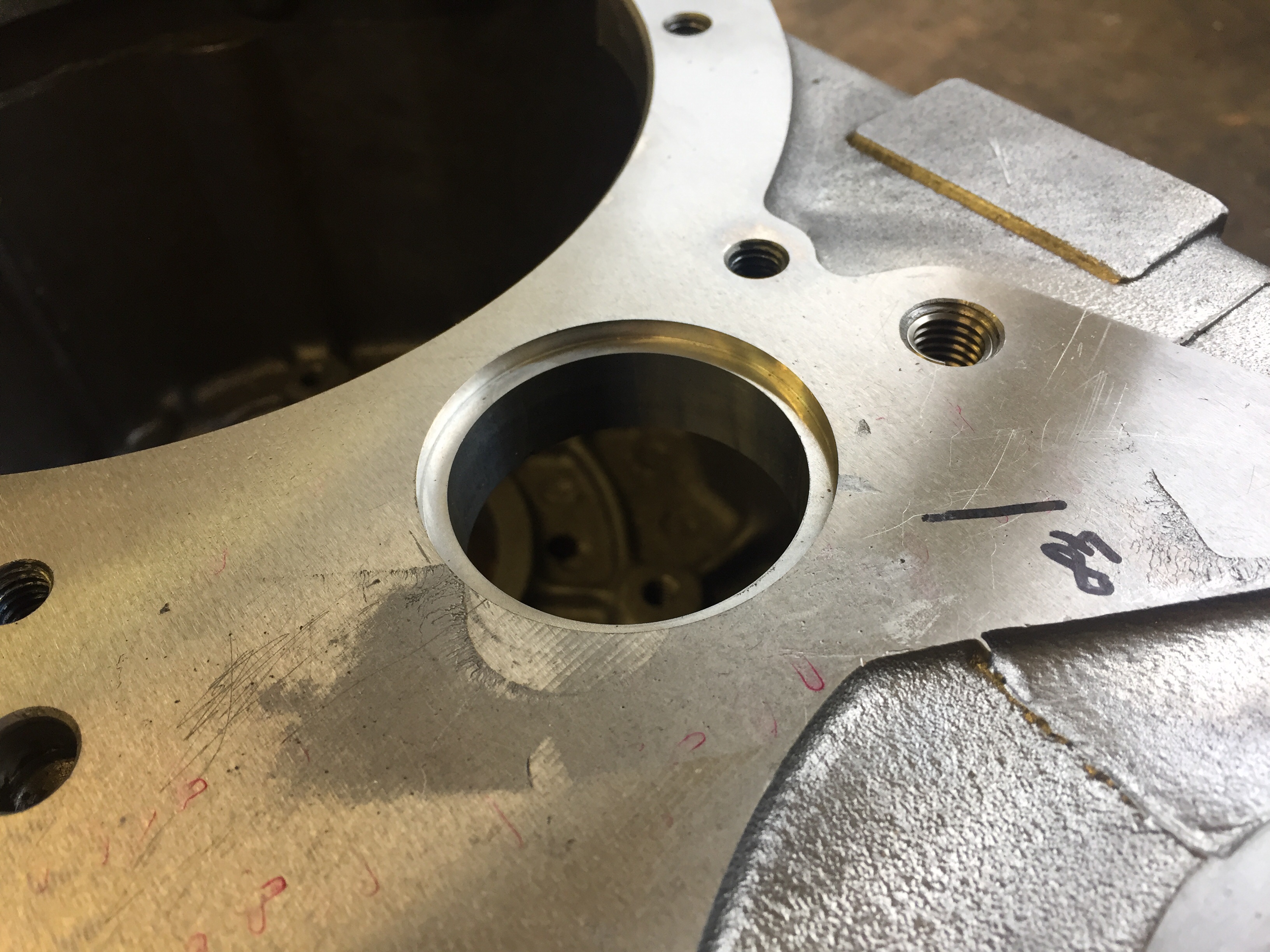 Nějak podobně to mám také, to osazení jsem tam ale dával kvůli své šikovnosti - pouzdro jsem tam dávali za tepla, když obal převodovky jsme ohřáli v kuchyni na plynovém vařiči. Předem jsme si změřili, jak moc se to roztáhne a pouzdro tam potom šlo úplně samo. Tak jsem měl trošku obavu, že bez osazení by propadlo skrz.