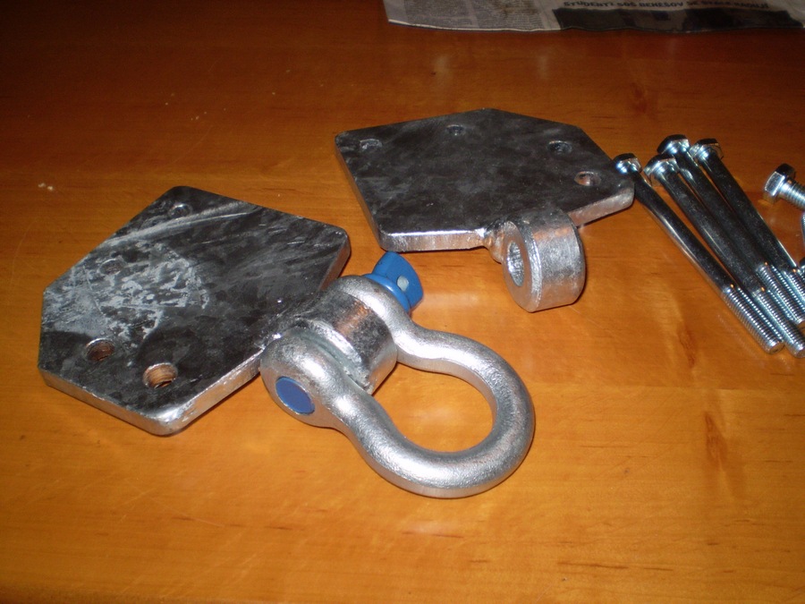 Mám taky tu obyčejnou bílou. Naposled sem s ní tahal kolegu co má Aro. Nevim kolik Aro váží, ale přetrhli sme dva řetězy než sem si vzpoměl, že jí mám. Problém byl, že sme byli mezi stromama a nebylo moc místa, tak jsem jí přeložil a uvázal napůl, smířenej, že se asi přerve. Ale i ta zmenšená kinetická pomoc zabrala a kurta vydržela. Jenom sem při té příležitosti zjistil, že ve předu nemám lano kde chytit. Tak sem hu uvázal za nájezďák, kterej se sice po ráně do pařezu trochu srovnal do původního stavu, ale moc se mi to nelíbilo, přece jen je to nějakej dural nebo co. Tak sem si udělal platle pod A-bar na origo nárazník a radši to trošku předimenzoval, materiál 10mm ocel a pořádný oko :-D
