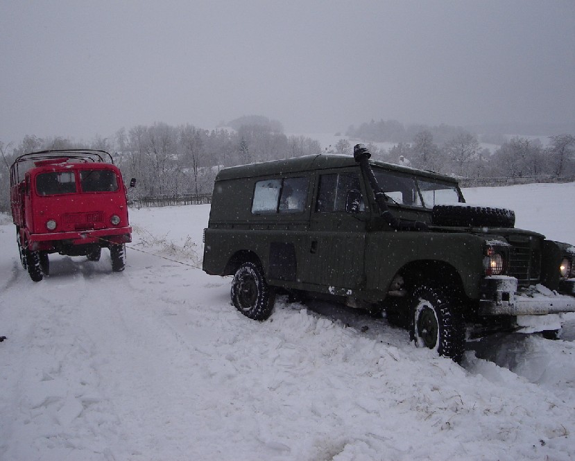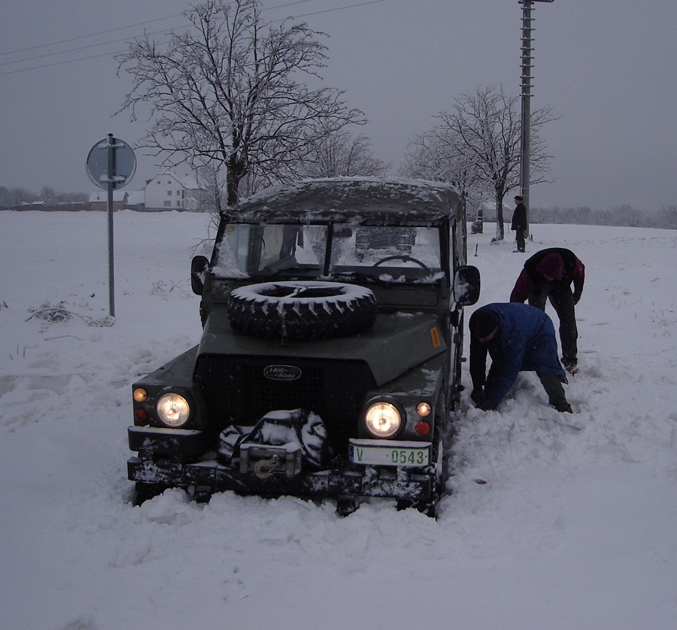 Až podut OK, akorát při otáčení jsem od cca 40cm sněhu přehlédl shovaná polena, takže mi jedno lehce pocuchalo přední nárazník a ke slovu příšel zvedák, abý šlo poleno vůbec vyndat a následně mohutné tlačení. Za necelou hodinu jsme byly venku.