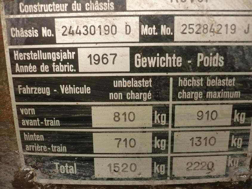 nebrzdenej vozejk je 750 kg, brzdenej 2000 kg, brzdenej 2 osej 3500 kg, tyto hodnoty plati stejne pro S2A i S3, rovnez plati stejnej typ motoru, tj. 46kw/4000 ot., pokud je tam puvodni motor, tak by to mel byt typ 271 nebo 276, da se to vycist z vyrobniho cisla bloku, prvni trojcisli oznacuje typ a dalsich sest poradovy cislo, ale vseobecne se motor oznacuje jen jako 2286cc diesel/petrol engine, tyhle trojmistny kody pak uz jen specifikuji vyrobni serie/podtypy a ruzne odlisnosti treba pro armadu, kompresni pomery atd., ale opravdu vic se nijak neznacily a musi jim to stacit
