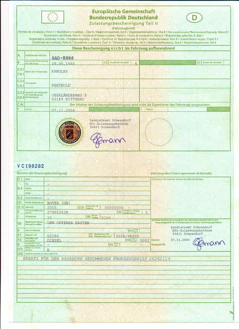 Přikládám německej Brief a Zulassung. jen pro info, jak tam fakt nic není. Kdyby alespoň majitel nevyhodil ten původní. Tam bylo téměř všechno. Nojo! DDR!