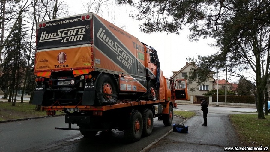 Tomášova závodní Tatra jela na odtahovce Tatra Balai celou cestu k přejímkám v Saint Cyprien. První závodní etapa se jede až 29.12.