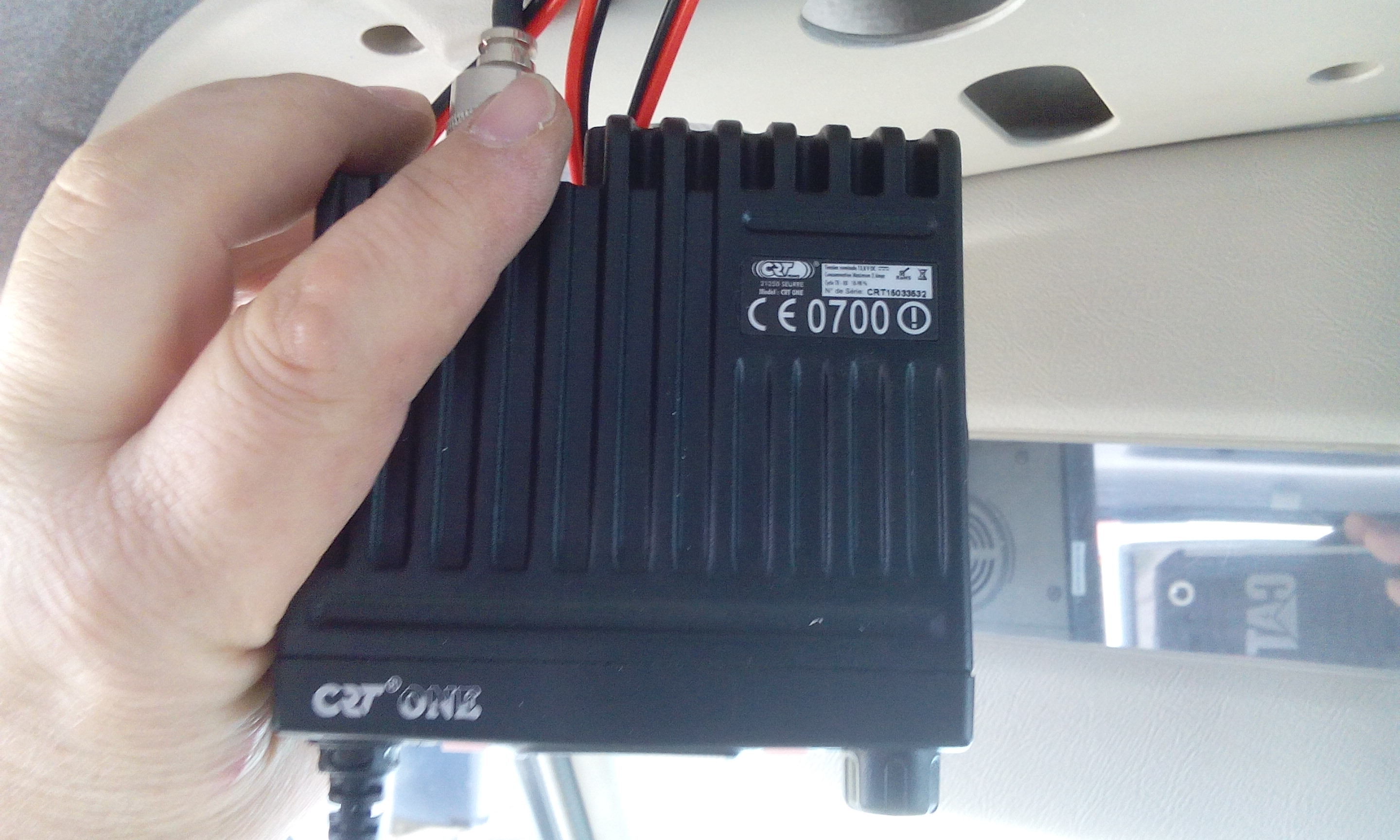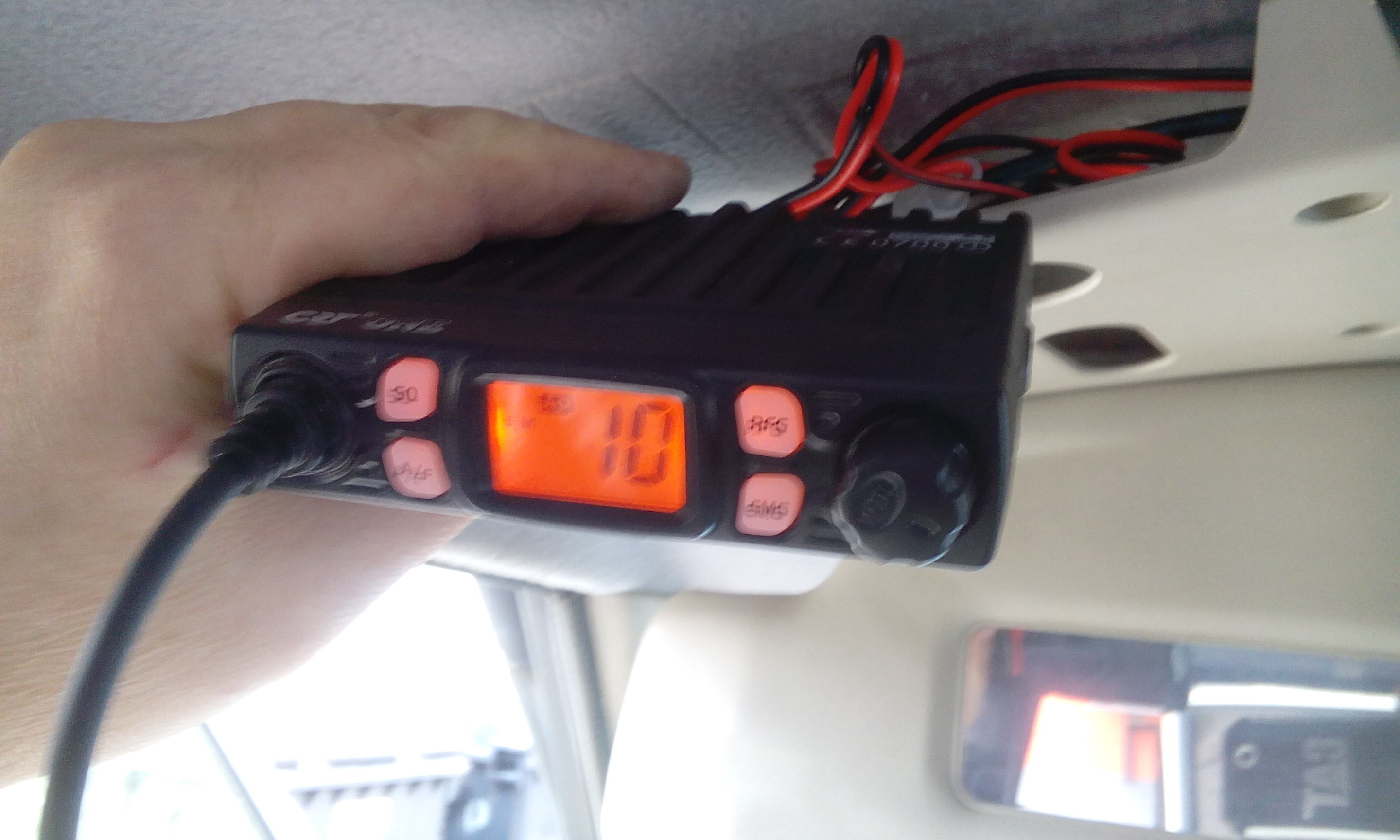 Pokud to hraje, tak není co řešit. Já mám v tomto místě jenom čelní ovládací panel a zbytek vysílačky je v kufru, schovanej pod tapecem. Takže jsem musel použít externí reproduktor, kterej sem vázacíma páskama přidělal k madlu nad dveřma řidiče. Takže to mluví "do ucha".