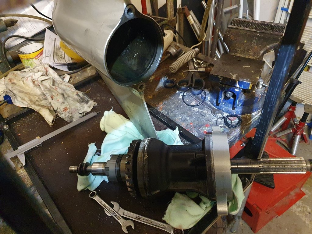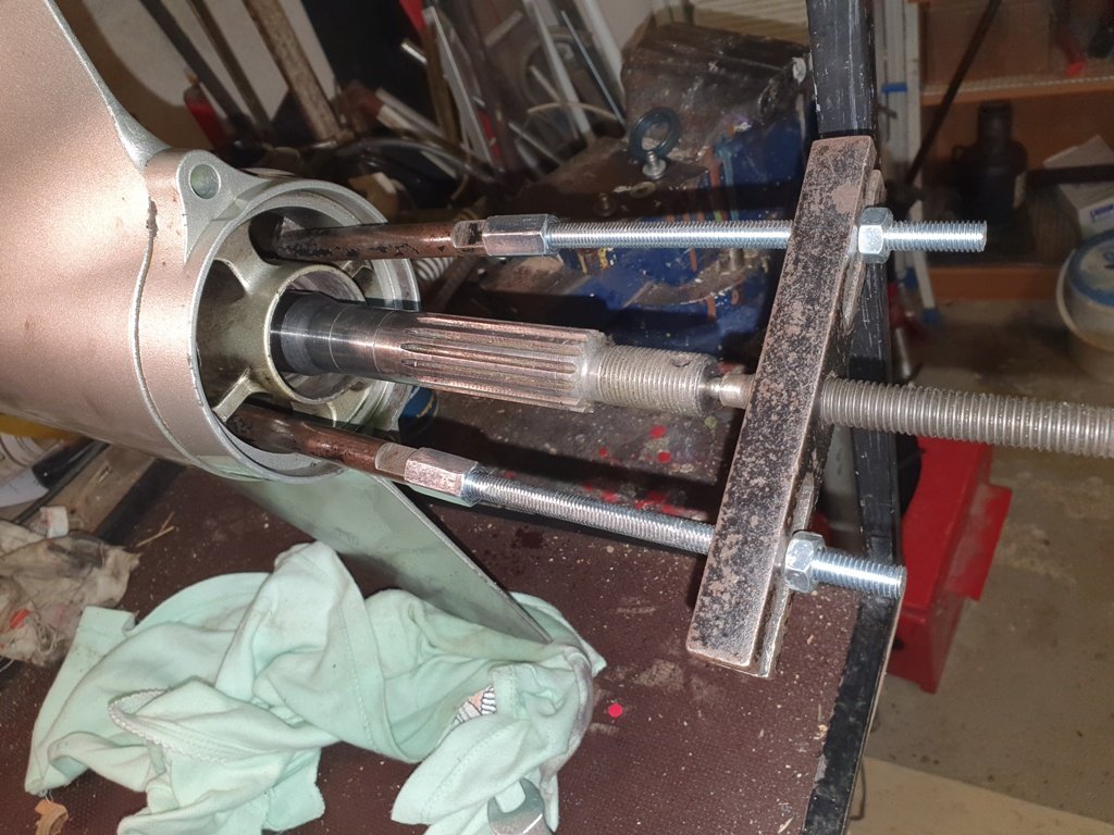 Tak zajtra len zohnať spätné kladivo a asi dostanem aj von vertikálnu hriadel. A ak dám nejako kultúrne dolu ložiská tak ich rovno vymením a zostane mi holá hriadel a to už asi tú drážku porieším trochu profesionalnejšie