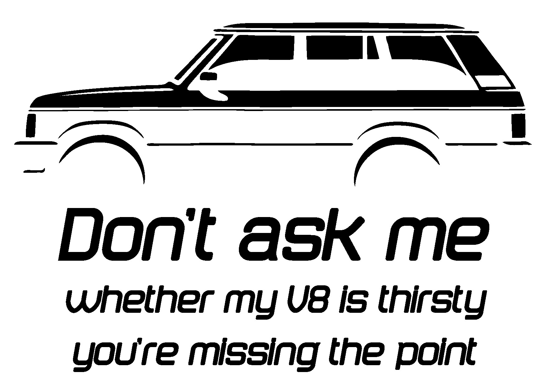 Udělal jsem si motiv na triko (obrázek jsem si vypůjčil ze ebay, za což se neznámému autorovi omlouvám a mám to jen pro vlastní potřebu). Další profi motiv mám objednaný od Honzy Hyrmana... Ten můj první je o tom, jak se mně pořád do zblbnutí většina lidí ptá kolik to žere... tak je tam něco v tom duchu - "Neptej se mně kolik můj V8 žere, protože o tom to není..." a to teda není.