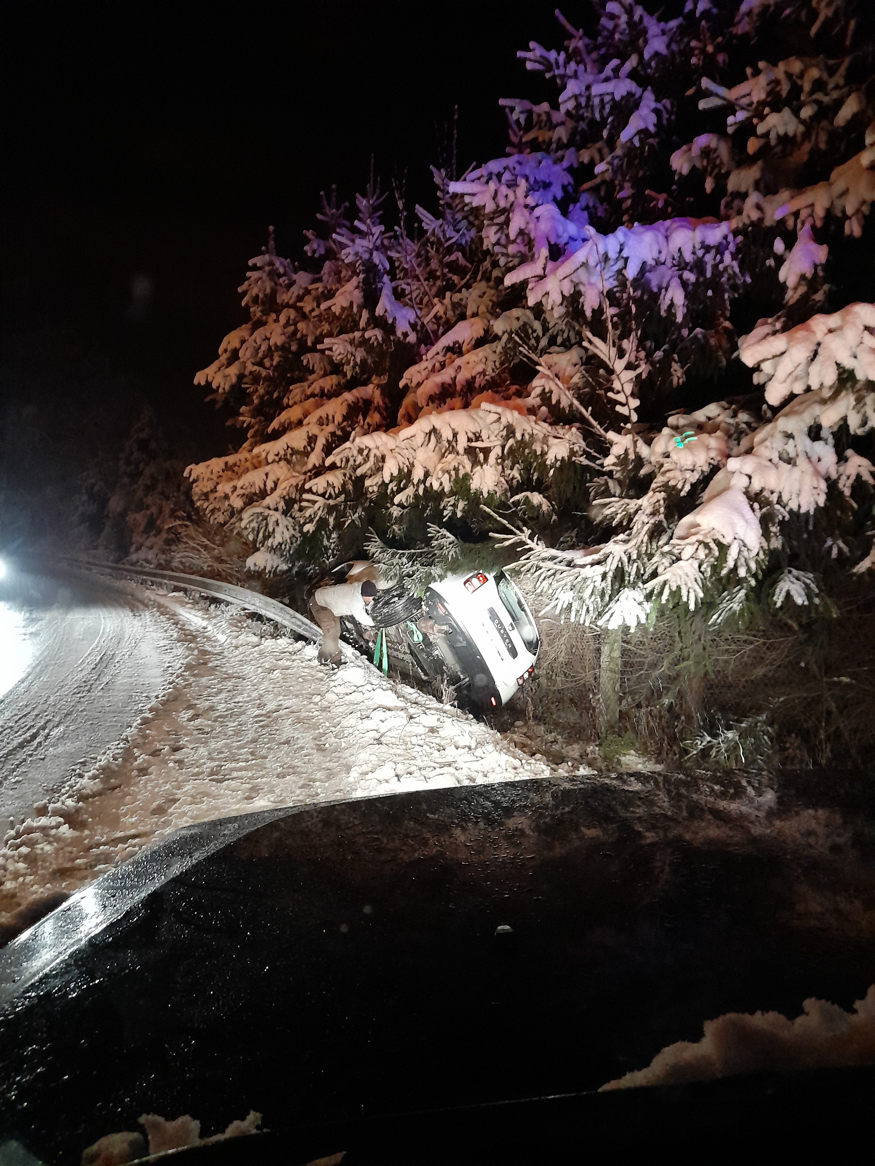 Různými Land Rovery jezdím už skoro 20 let, ale až dnes večer se mi podařilo být ve správnou chvíli na správném místě, konkrétně u Devíti křížů, kde se vzpříčil kamion a zůstal zoufale hrabat. Zablokoval tak jediný výjezd z odpočívadla na D1. Po 20-ti minutách snažení, kdy jsme mu pod kola házeli všechno, co nám přišlo pod ruku, se mu podařilo popojet tak, abych se kolem něho protáhnul a vzal si ho do vleku. Se zařazenou redukcí, vypnutým proti-prokluzem a TR na programu sníh, se mi podařilo ho odtáhnout cca 25m na místo, kde mohl zaparkovat, aniž by kohokoliv blokoval. Škoda, že jsem to nemohl vidět zvenku. Musí to být skvělý pohled, jak osobák, byť velký Land Rover, táhne plně naložený kamion na řetězu.