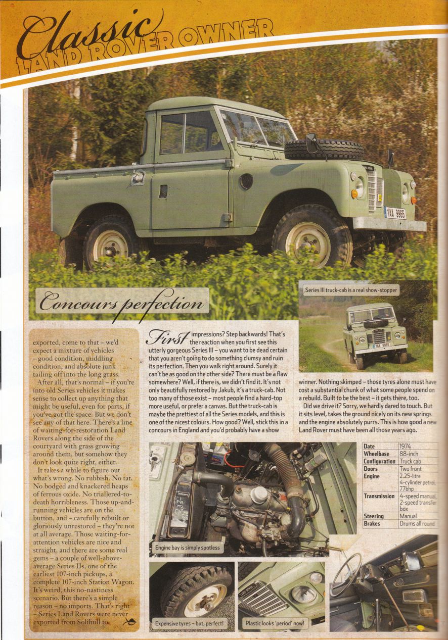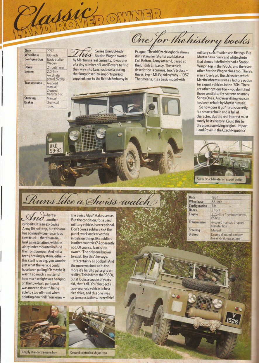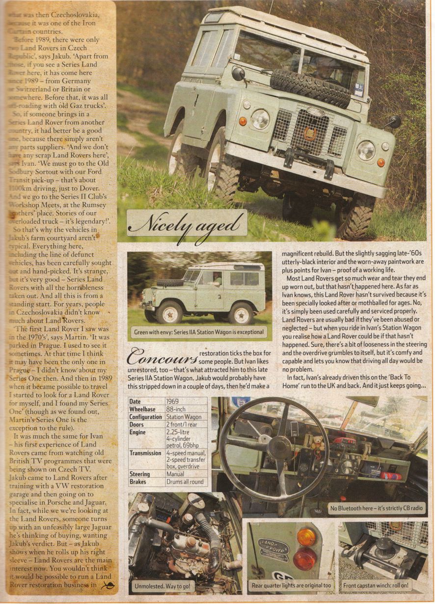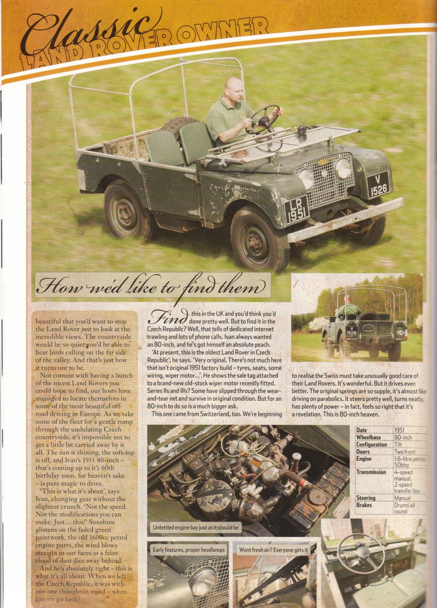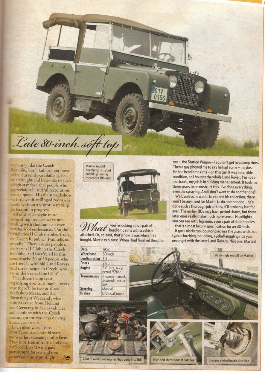 Pro ty, kterým nechodí LRO přikládám scany z posledního čísla časopisu... O to, aby se dostalo české dědkařské hnutí do LRO jsem se snažil delší dobu, bohužel, na redakci je kladen velký přetlak v nabídce možností na článek, tedy to není až tak jednoduché, tím spíš, že v našem případě musí redaktoři přiletět do tak trochu "terra incognita". Nicméně po delší komunikaci a dobrých referencích ze strany Angličanů, kteří za těch deset let co jsem s nima v kontaktu už o ČR něco vědí, se vydavatelství rozhodlo, že do ČR vyšle redaktora - Peter Galille a profi fotografa -Tom Critchell. Jak to všechno dopadlo je na fotkách níže. Celou akci beru jako prezentaci ČR a místního LR dědkařského hnutí. Jsem rád, že jsme navázali na to co v LRO, článkem o Berniem, začal Honza... V některém z dalších čísel bude článek o Krytenově "Bug Eye" a protože se tady angličanům moc líbilo, vymýšlíme jejich účast na nějaké dědkařské akci v relativně blízké budoucnosti.