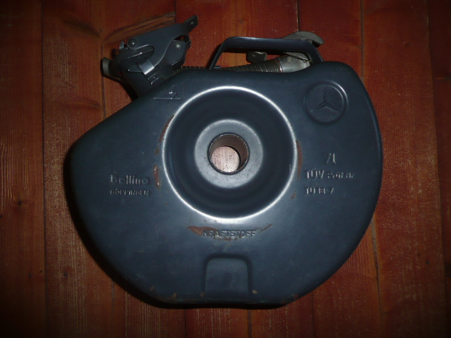 Originální kanystr Mercedes Benz . Dával se do starých modelů W107,W108,W109,W110,W111,W112....ale i do W123,W124,W126.... je na 7l ,original upevněn v rezervě vozu. Cena 1800 kč. kč. Tel. 608307960