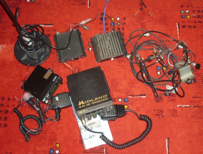 Mam tu dve vysilacky a dva zesiky vymontovane v druhe polovine devadesatych let z kamionu a od te doby je schranuju a je mi cim dal jasnejsi, ze je nikdy nepouziju. Kdysi jsem zkousel vysilacky, ze se probudi a bzuci a tak, ale nevolal jsem s nima, takze spise predpokladam nez vim, ze je to vse funkcni. Obe vysilacky maji mikrofonek - mike. A pak je u toho jedne supe luxus magneticka antena sirio s kloubem a perem na samotne antene, k te antene je kabel normalne. Antena drzi na lednicce jak cert, ale treba na defovi kupodivu, ze - hlinik... Plus nejaky srot jako drzacky a kabliky. No je to na fotkach.