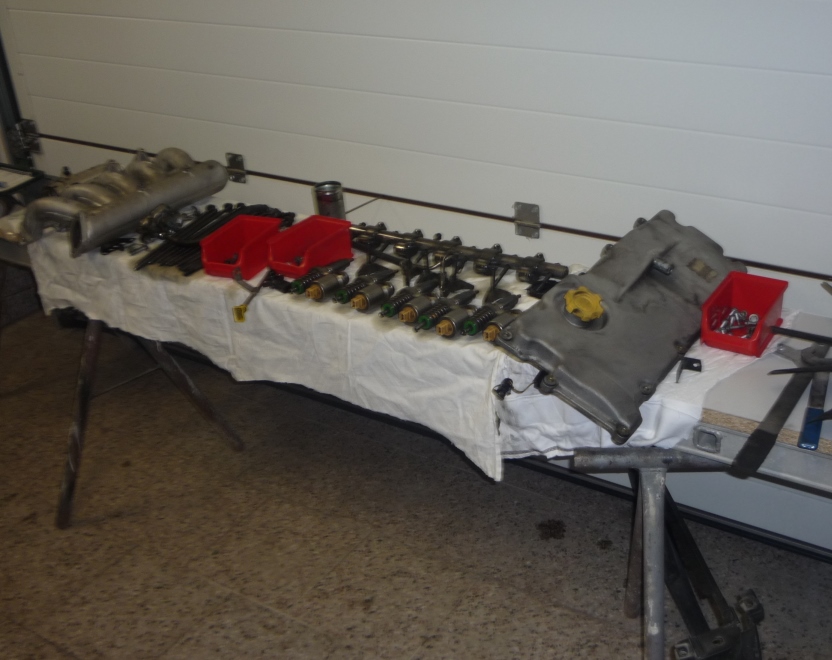 Protože jsem si nechtěl zabírat místo na zvedáku a omezovat se v dílně, dělám to ve skladě.