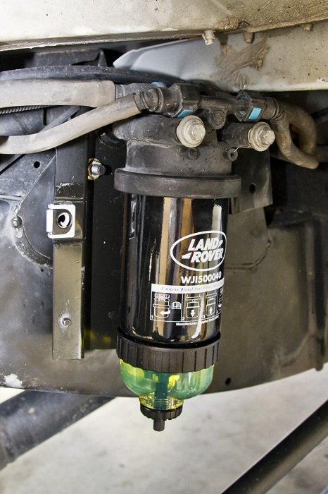 Puma má vysokotlaké vstřikování paliva comon rail a to je náchylné na kvalitu nafty. Uvažoval jsem o samostatném přídavném naftovém filtru se separátorem vody a kálů od Parkeru, který jsme chtěli s Adamem umístit do motorového prostoru. Bohužel, se to vzhledem k místu (u pumy to je dost zaskládané), nepodařilo. Dalším řešením by bylo použít dle převzatých informací a obrázků z Australského fóra "nástavec" na originální palivový filtr. Tento nástavec je vlastně separátorem. Naftový filtr se po aplikaci separároru prodlouží, což si vyžaduje jeho posunutí výše na rámu za použití podkladní montážní desky, která se musí vyrobit. Dalším krokem je úprava samotného krytu palivového filtru. Více je fotkách níže.
