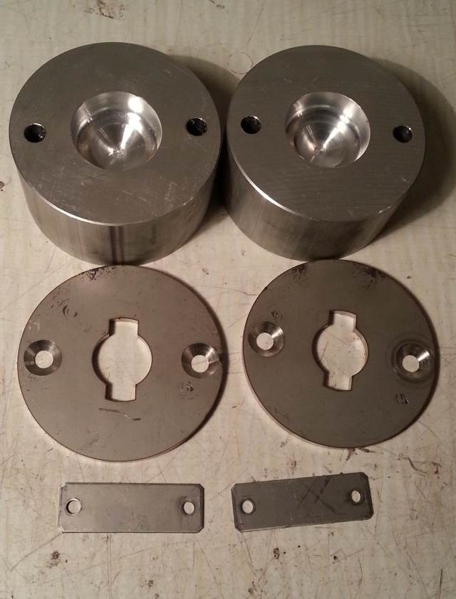 (na obrázku - zhora - Al tělo podložky 45mm, nerez upevňovací plech měchu s bajonetem tl. 5mm, nerez prodloužení táhla čidel)