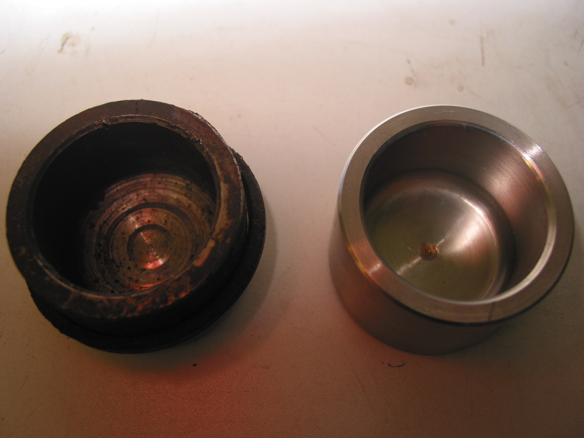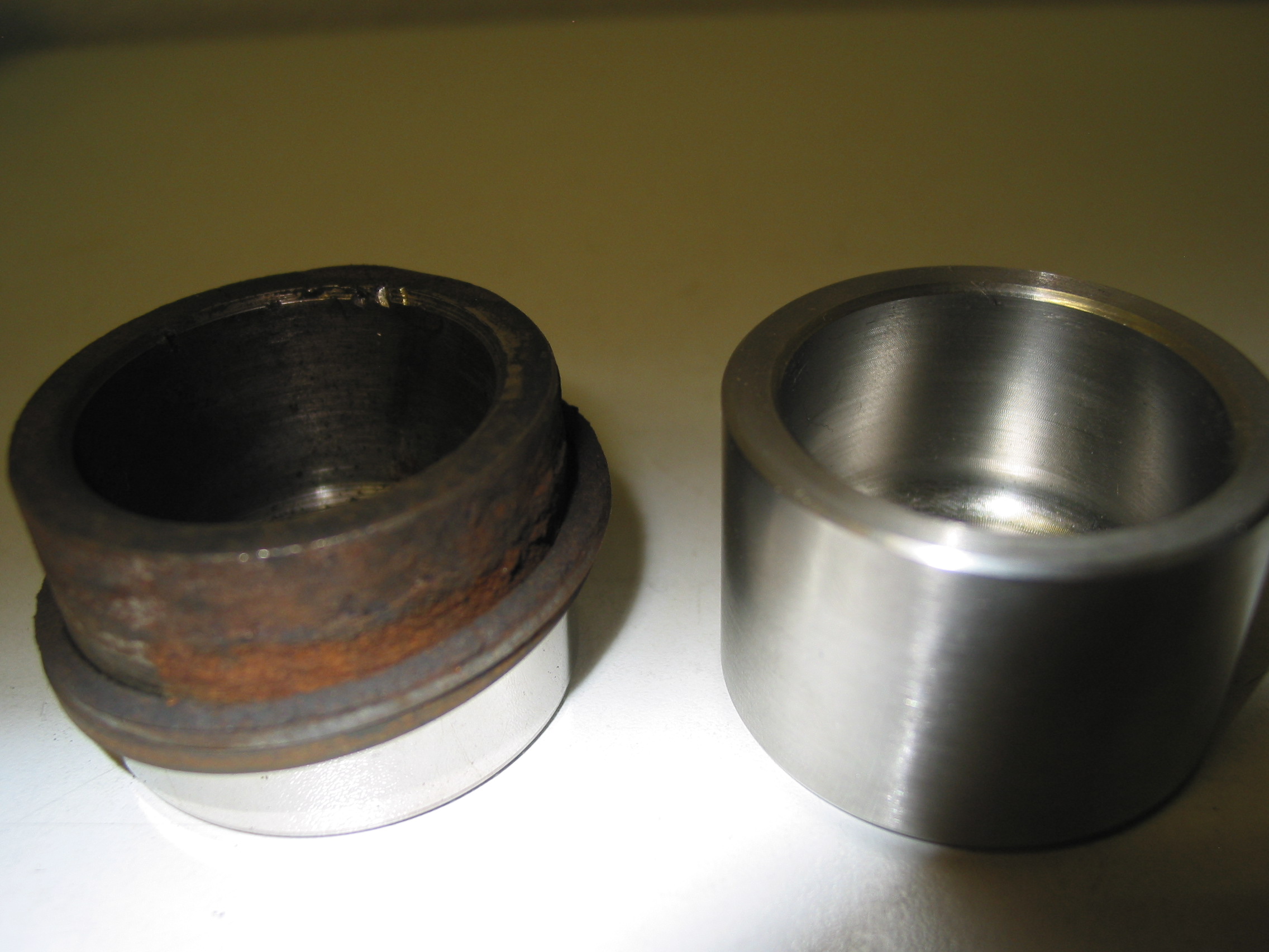 Pístek z mého Defa (145tkm) v porovnání s nerezákem. U mě šli pístky ještě vytočit alespoň kleštěma