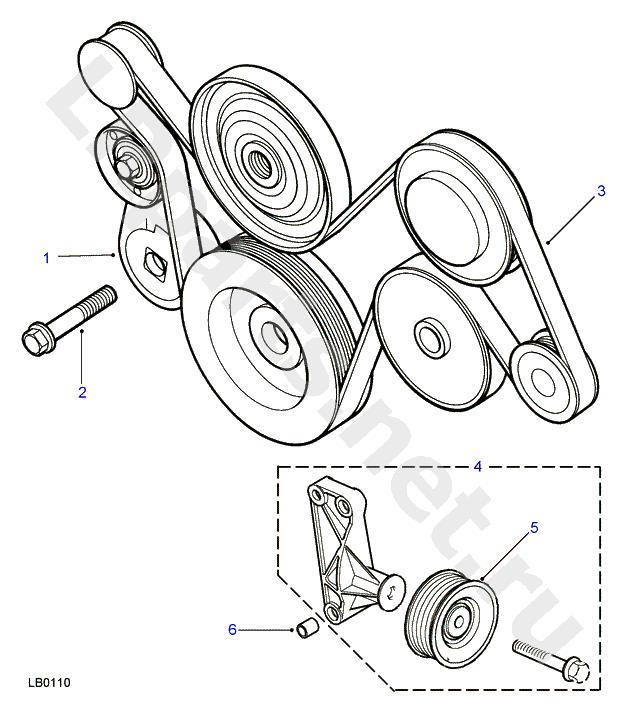 Takže predpokladám, že napínacia kladka je položka č.1 z obrázka. Povolím šrúbu č 2? Alebo mám zapáčiť za šrúbu priamo na kladke v jej strede?